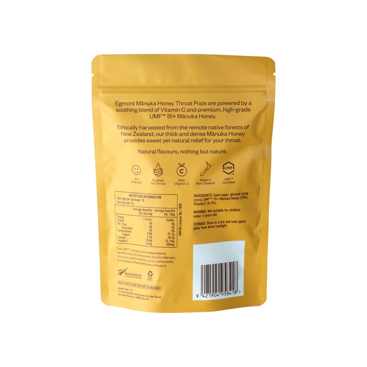 | KEY INFORMATION | Egmont Manuka Honey Throat Pops are powered by a soothing blend of Vitamin C and premium, high-grade UMF 15+ Manuka Honey. |