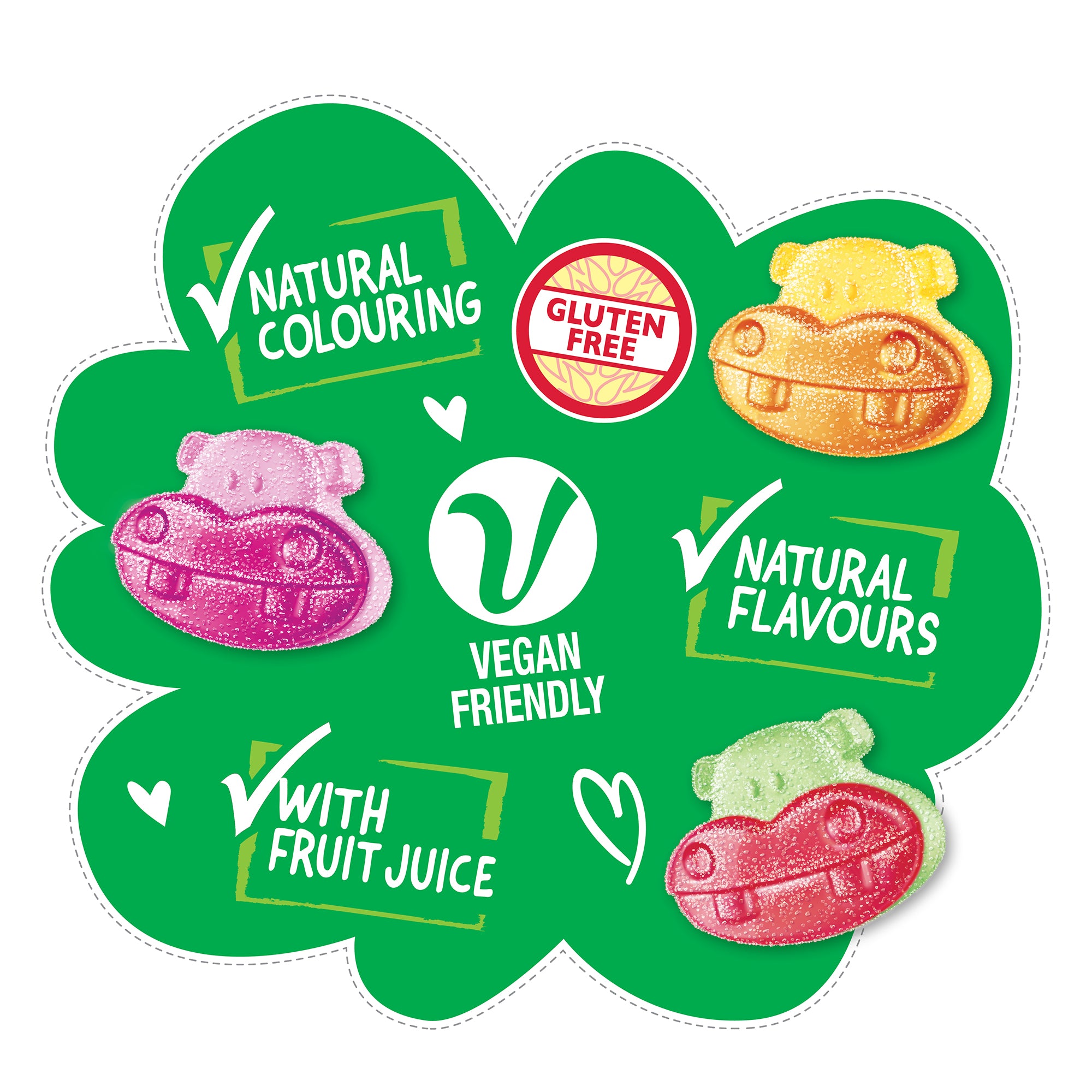 Fruit-tella Hippos are unmistakable fruity flavoured Gelatine & Gluten Free Vegan friendly jellies.