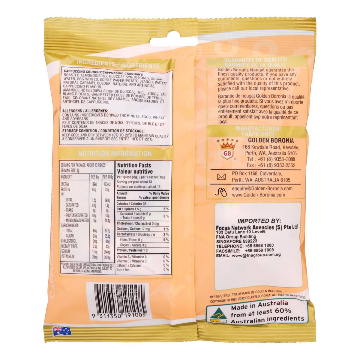 Golden Boronia Nougat – Cappuccino Crunchy
