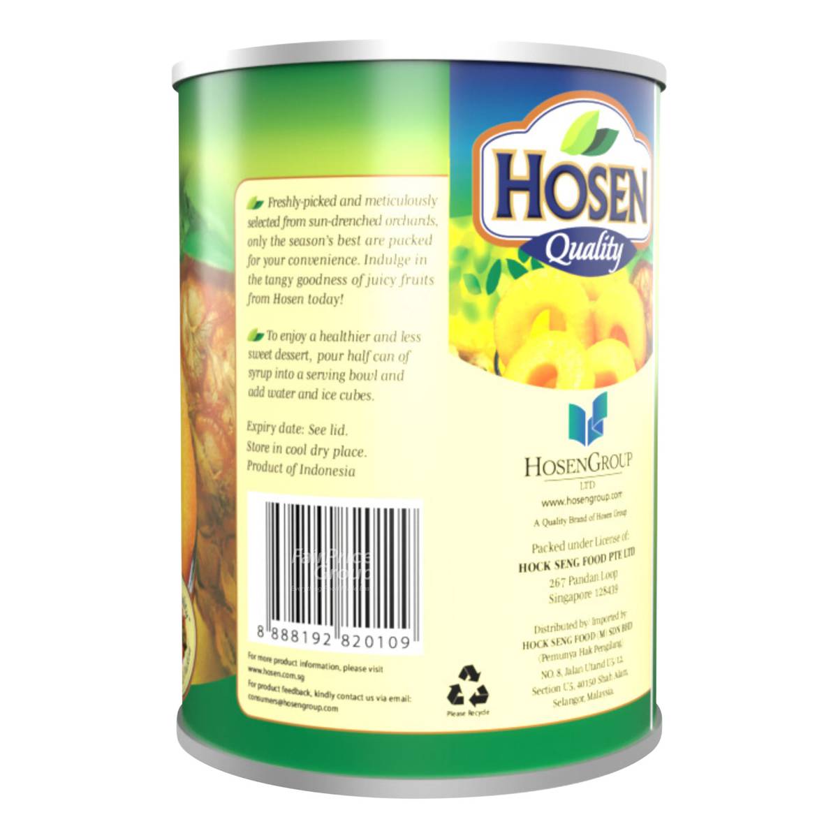 | PREPARATION | Our Hosen quality canned fruits are be served straight from the can or be used for your various cooking creations |