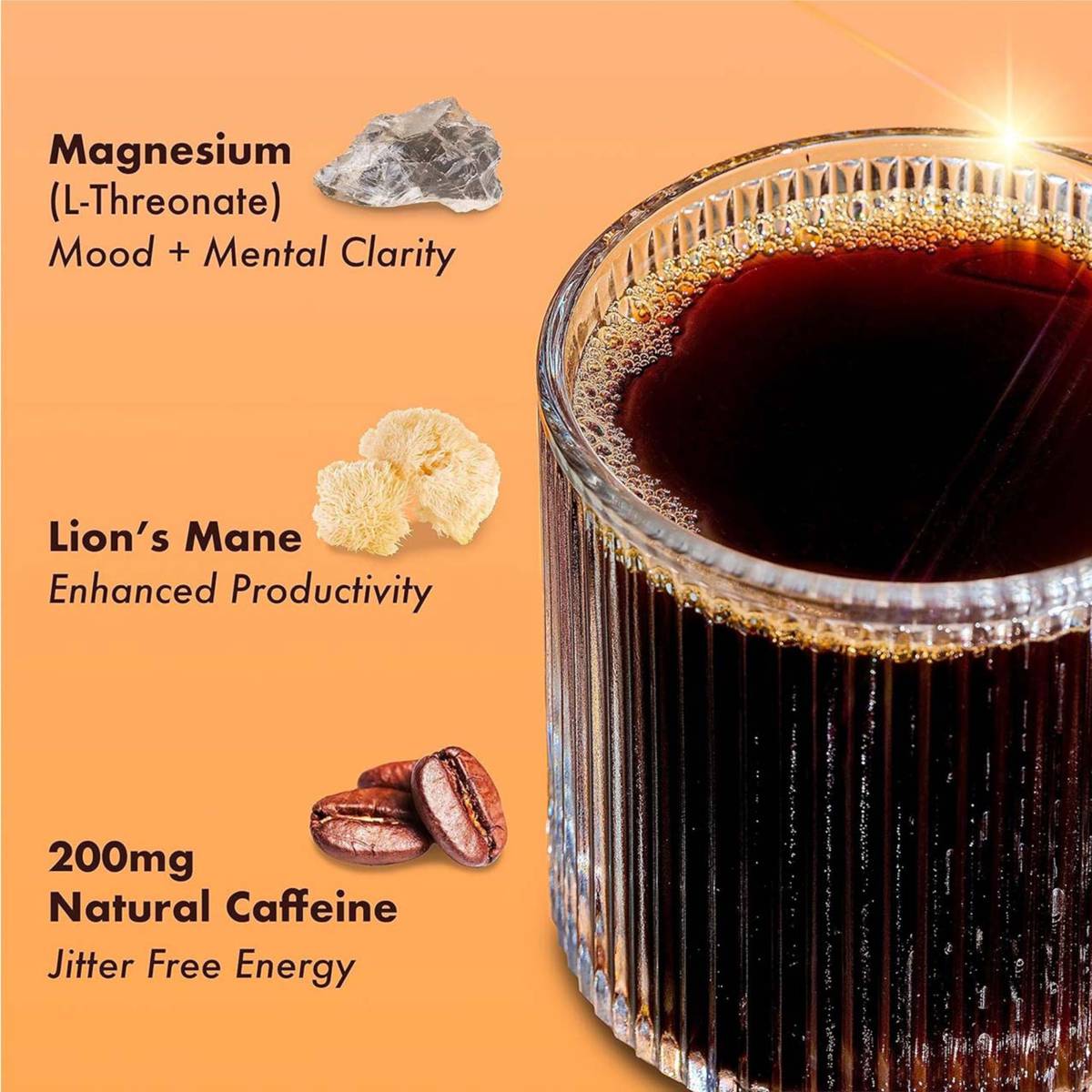 | – | Combines premium, dark-roasted Brazilian coffee, potent brain nutrients, and rich, velvety dark chocolate flavor thatll tickle your tastebuds. |