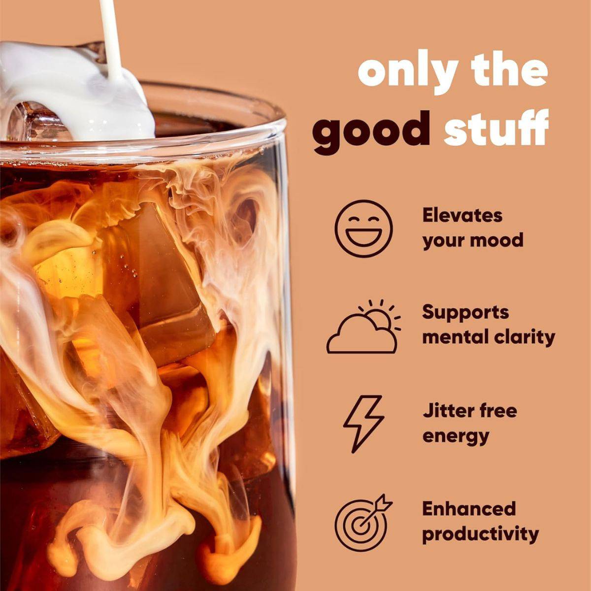 | – | Combines premium, dark-roasted Brazilian coffee, potent brain nutrients, and delicious, earthy, nutty flavor with just the right level of toastiness. |