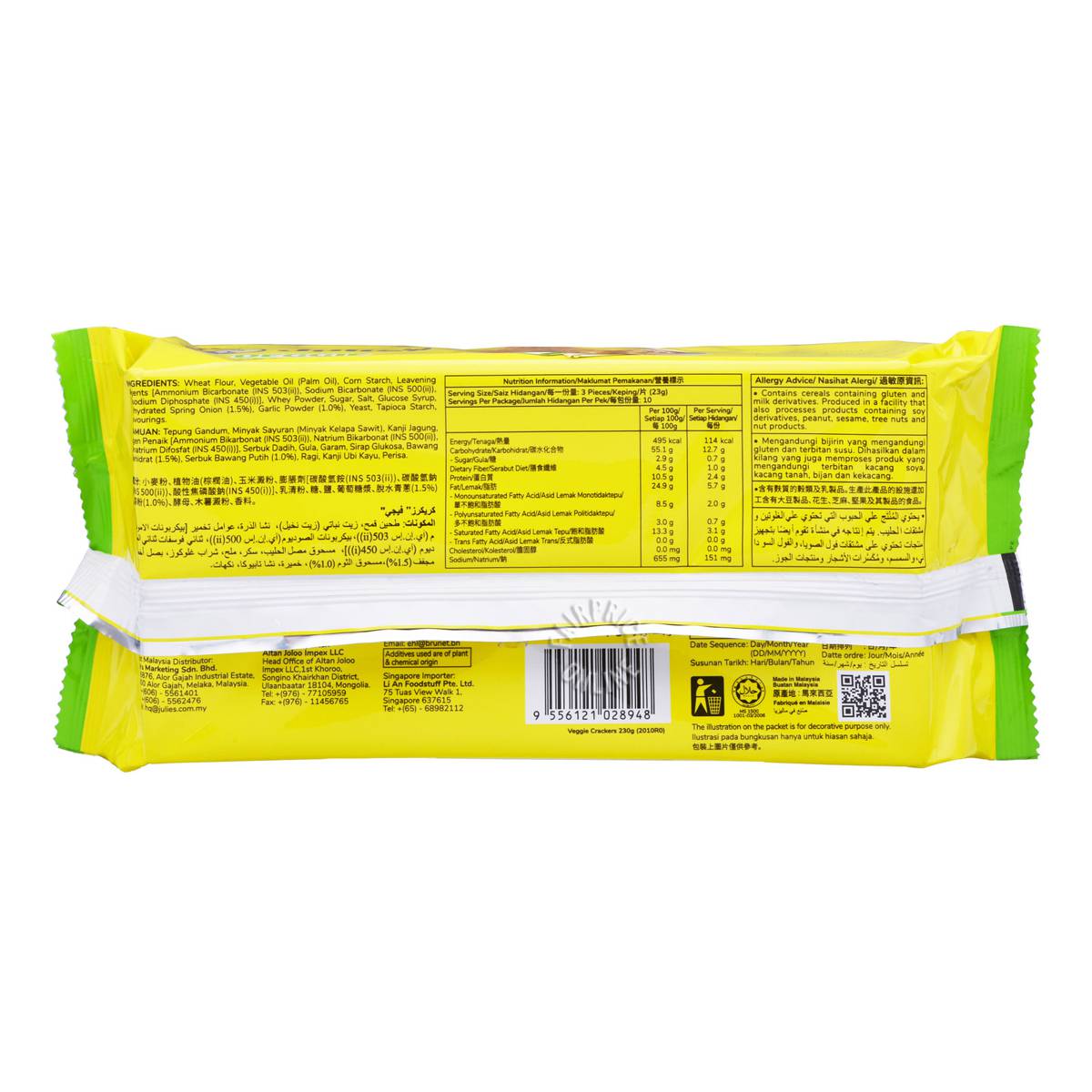 | – | • Appealing bright golden crackers with plenty of dehydrated spring onion flakes on the surface |