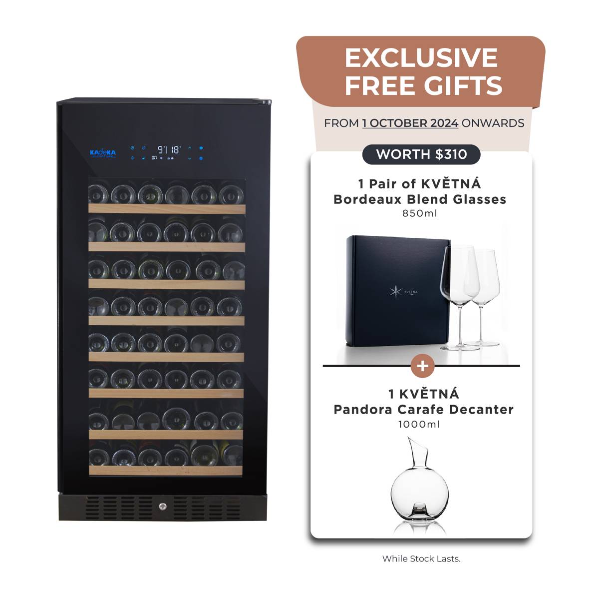| – | • [FREE GIFT] 1 pair of Bordeaux Blend Glasses 850ml + 1 Pandora Carafe 1000ml (worth $310) included. While stocks last. • 2-Year Warranty |