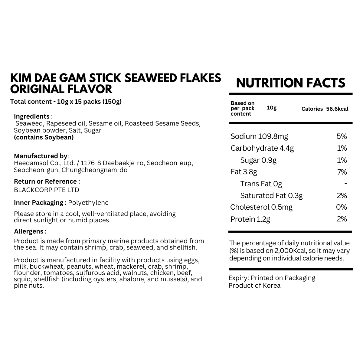 | COUNTRY/PLACE OF ORIGIN | South Korea |