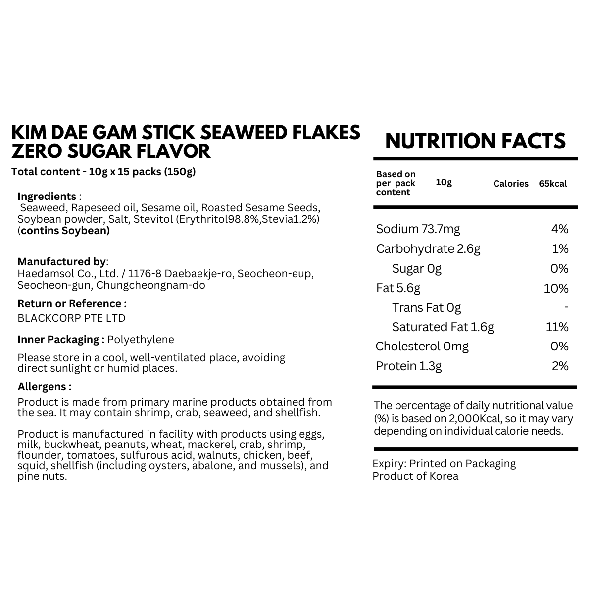 KimDaeGam Seaweed Stick Flakes For Adults – Zero Sugar