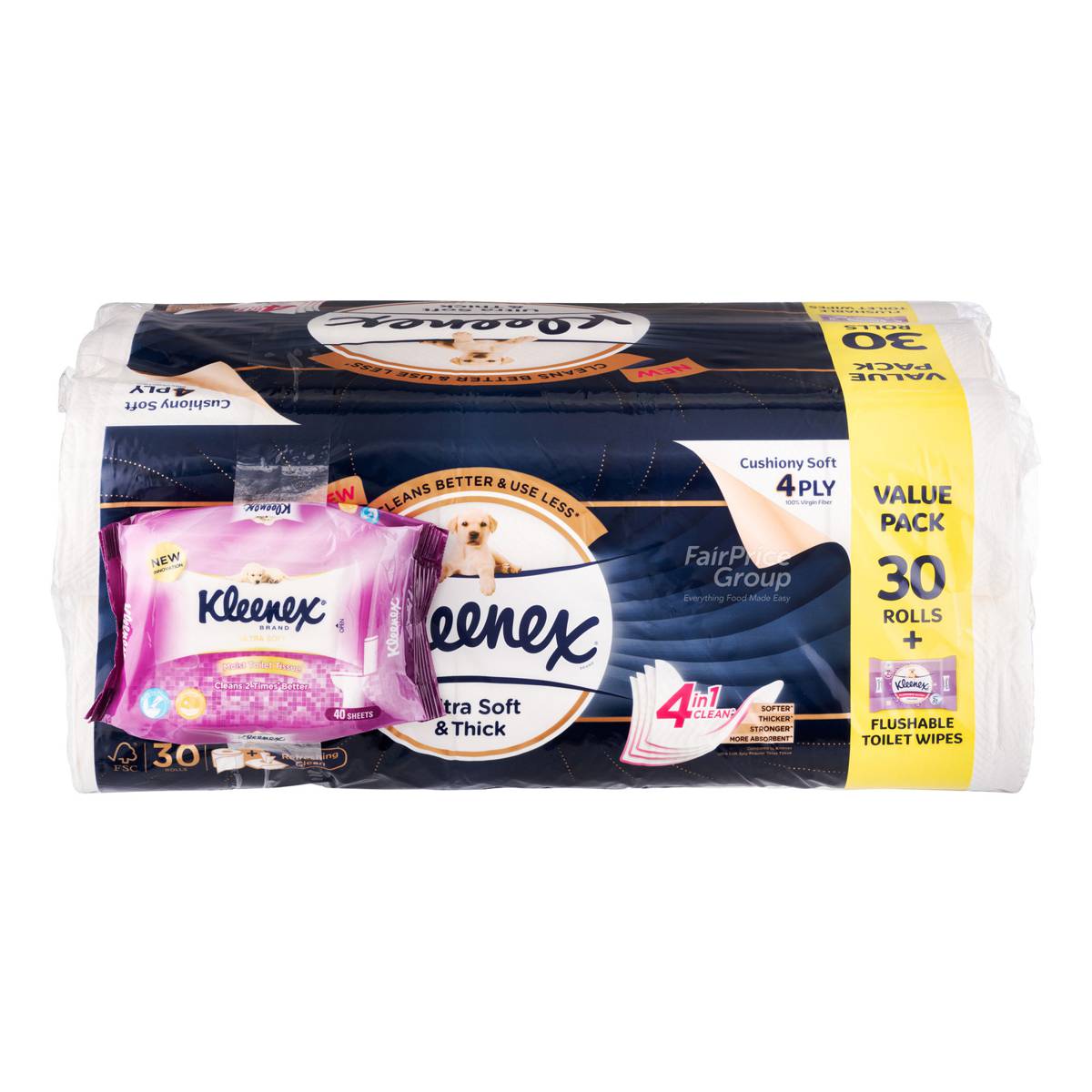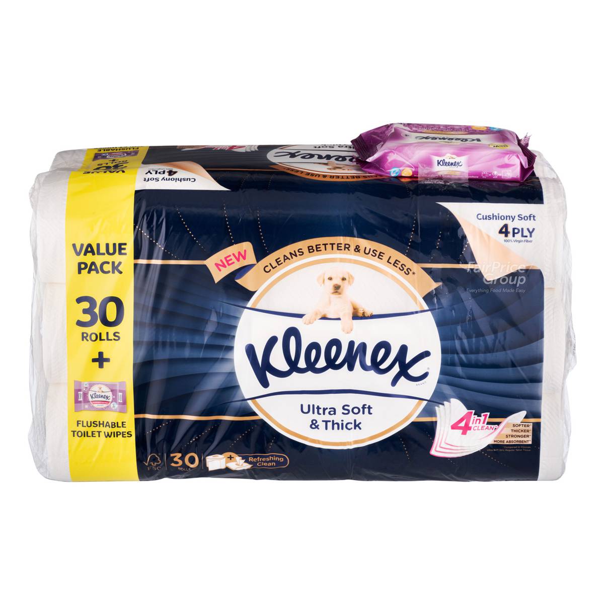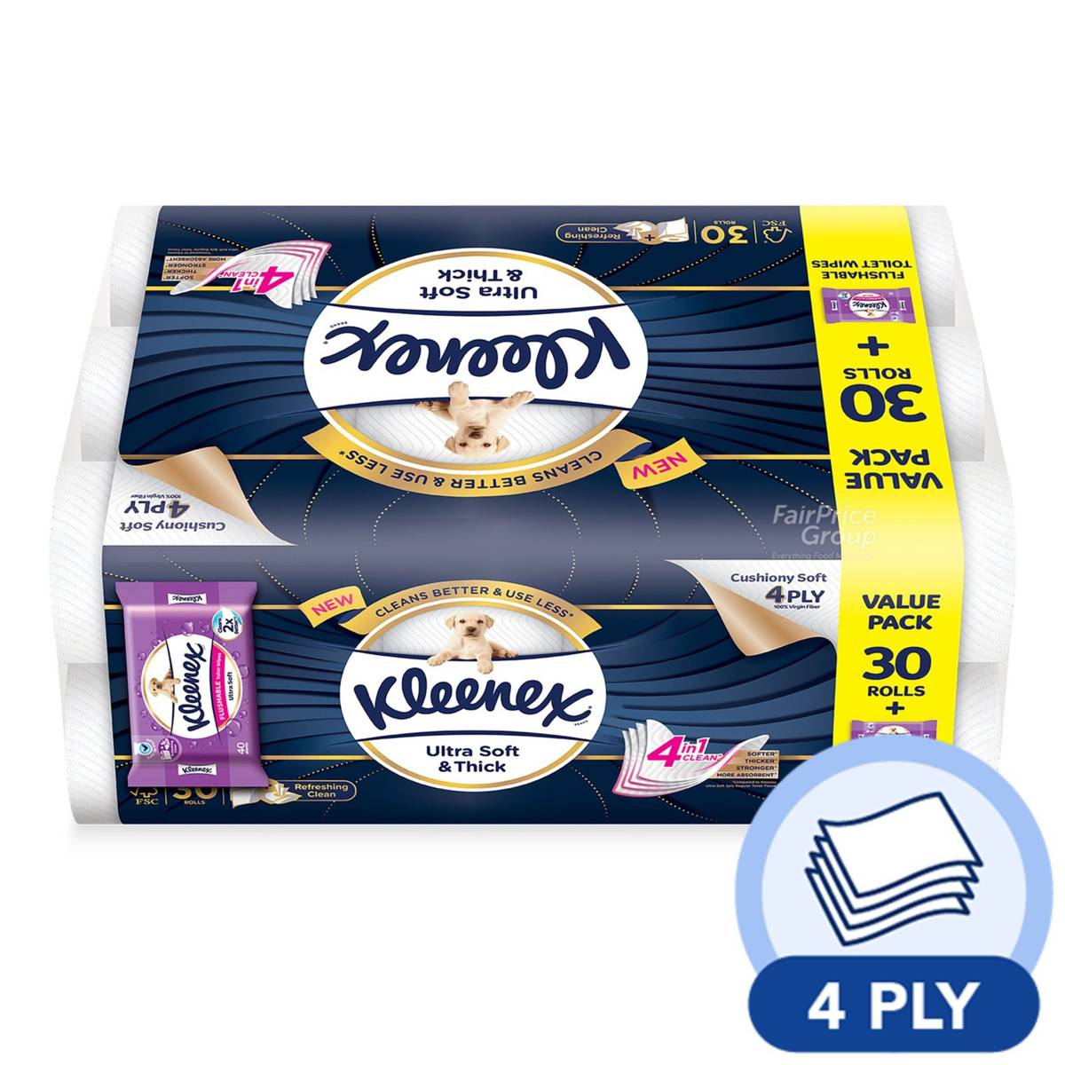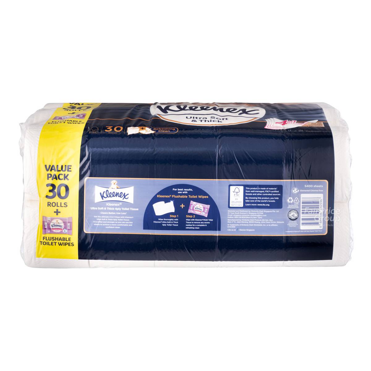 Kleenex Toilet Tissue Rolls (4 ply) + Moist Toilet Wipes