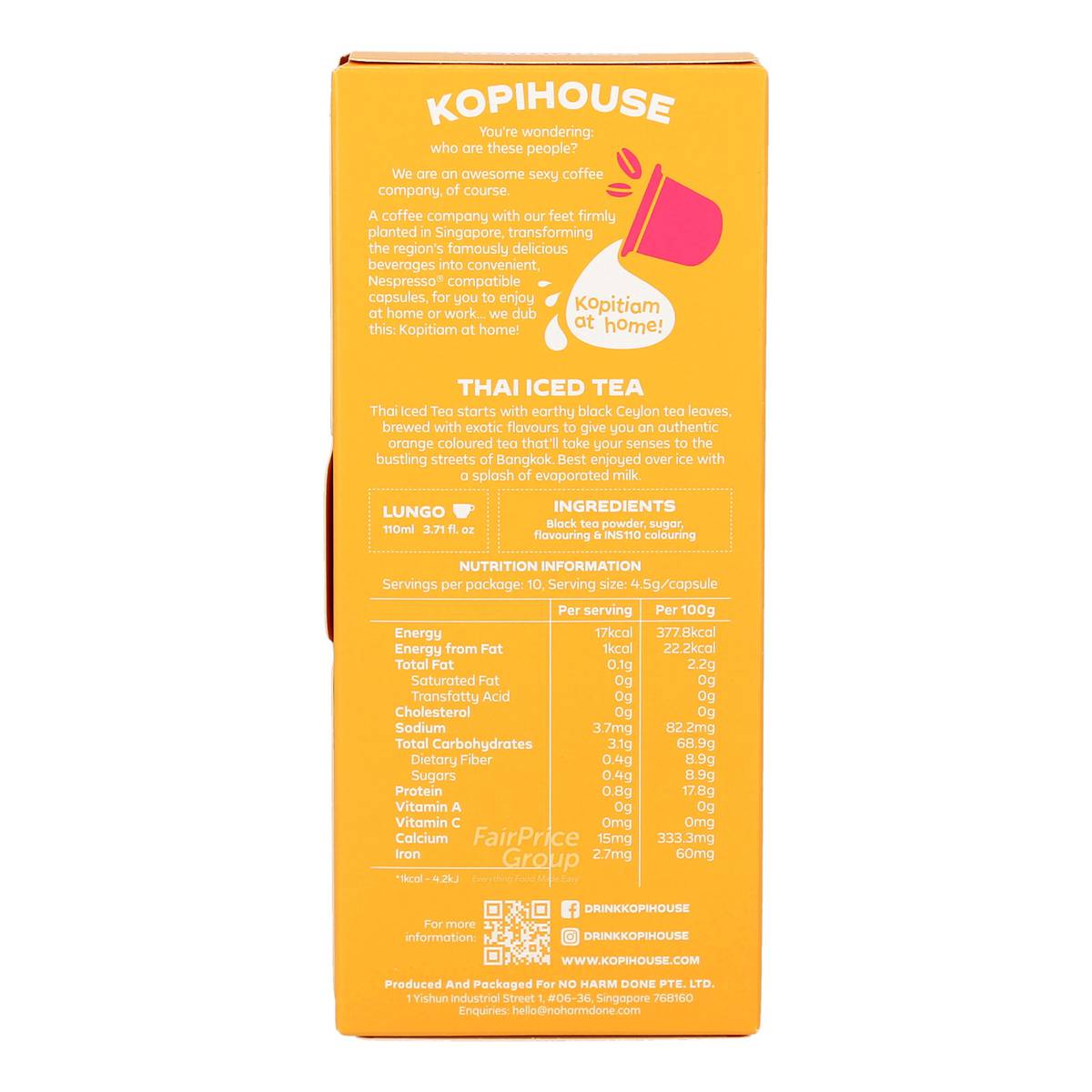 | – | • Thai Iced Tea starts with earthy black Ceylon tea leaves, brewed with exotic flavours to give you an authentic orange coloured tea that’ll take your senses to the bustling streets of Bangkok. |