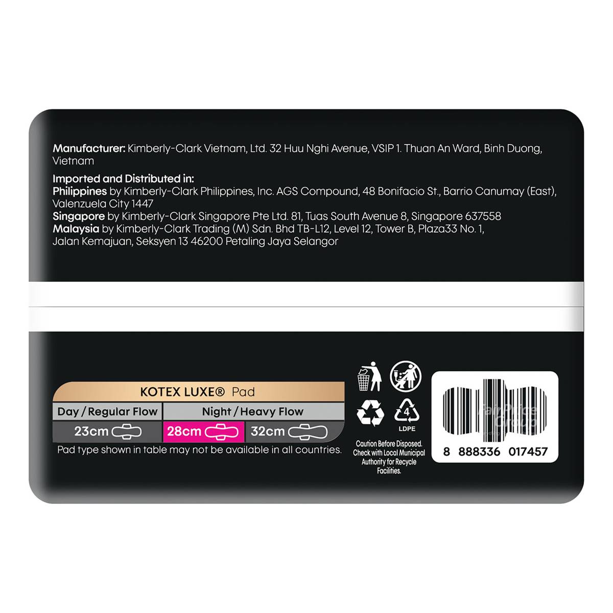 Kotex Luxe Ultrathin Overnight Wing Pads – Heavy (28cm)