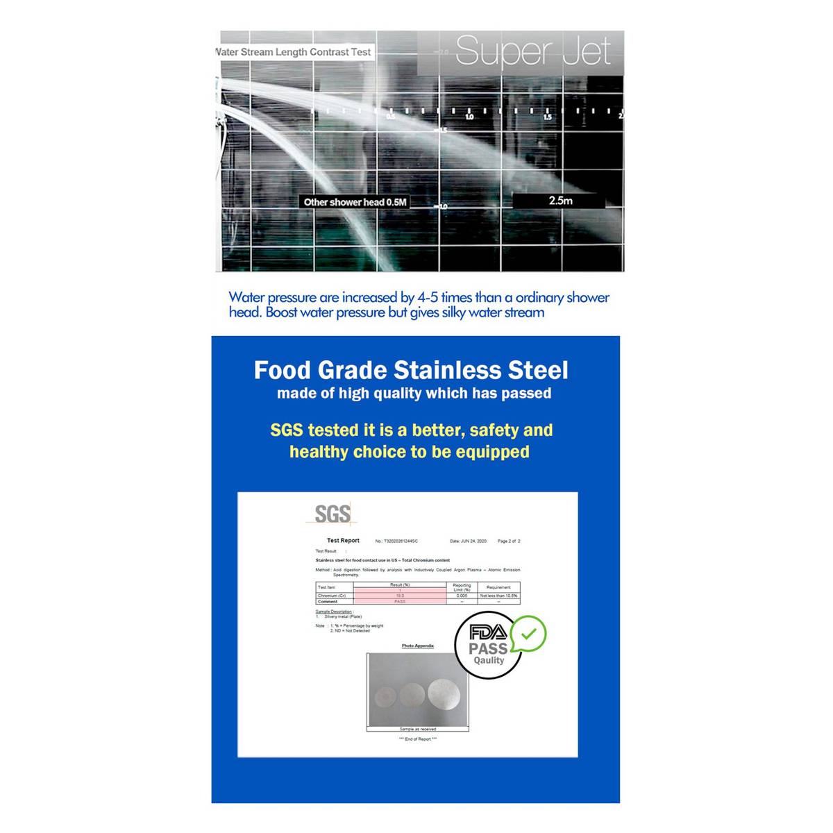 | KEY INFORMATION | Ergonomic handle to create a relaxing new shower water purifier experience Micro Filter Showerhead come with 3 mode water spray Made of the 304 stainless steel with thick chrome-plate Help to kill 99.9% bacteria, remove chlorine, dirt & rust Tested water saving up to 75% Filter certification *Passed Strict Quality Control Certified SGS / ROHS /FDA.Packaged included showerhead and shower Filter x1pcs |