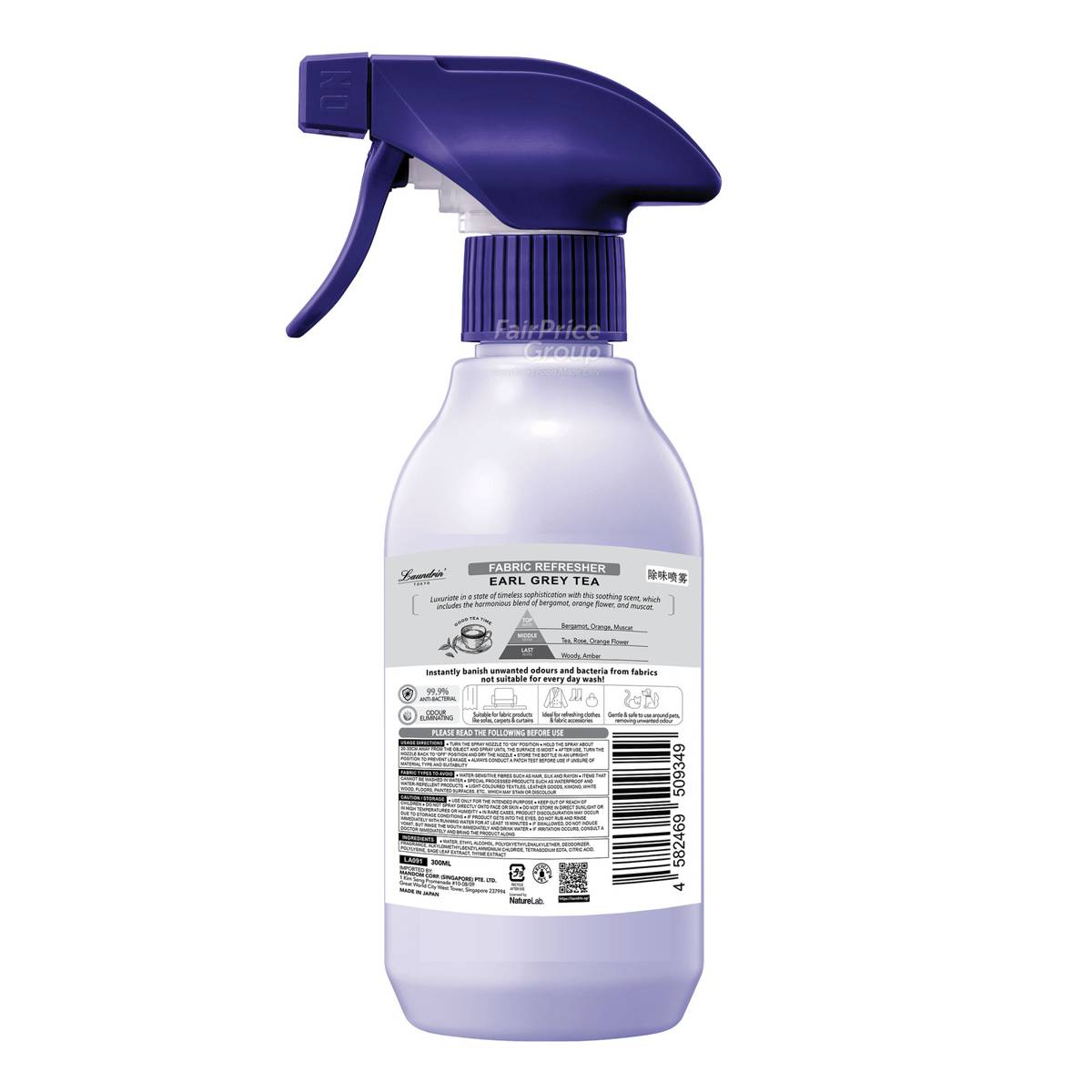 | – | Gentle aroma of Earl Grey Tea lightens your heart & uplifts your mood, especially on Sundays. Use Laundrin Fabric Refresher to effectively eliminate 99.9% bacteria and odors from textiles not designed for regular washes. It also helps eliminate unpleasant smells caused by food, pets, or cigarettes. |