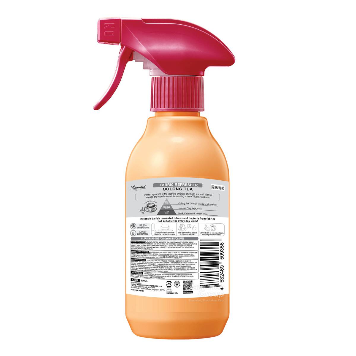 | – | Smooth and aromatic scent of Oolong Tea that refreshes & resets your mind, perfect for an afternoon break. Use Laundrin Fabric Refresher to effectively eliminate 99.9% bacteria and odors from textiles not designed for regular washes. It also helps eliminate unpleasant smells caused by food, pets, or cigarettes. |