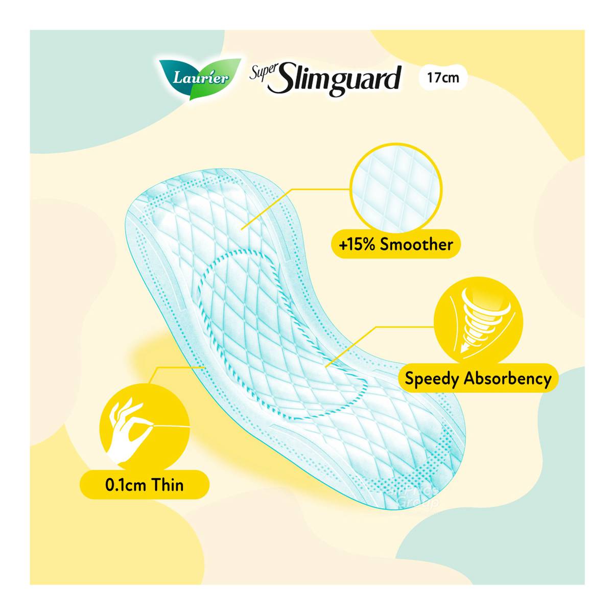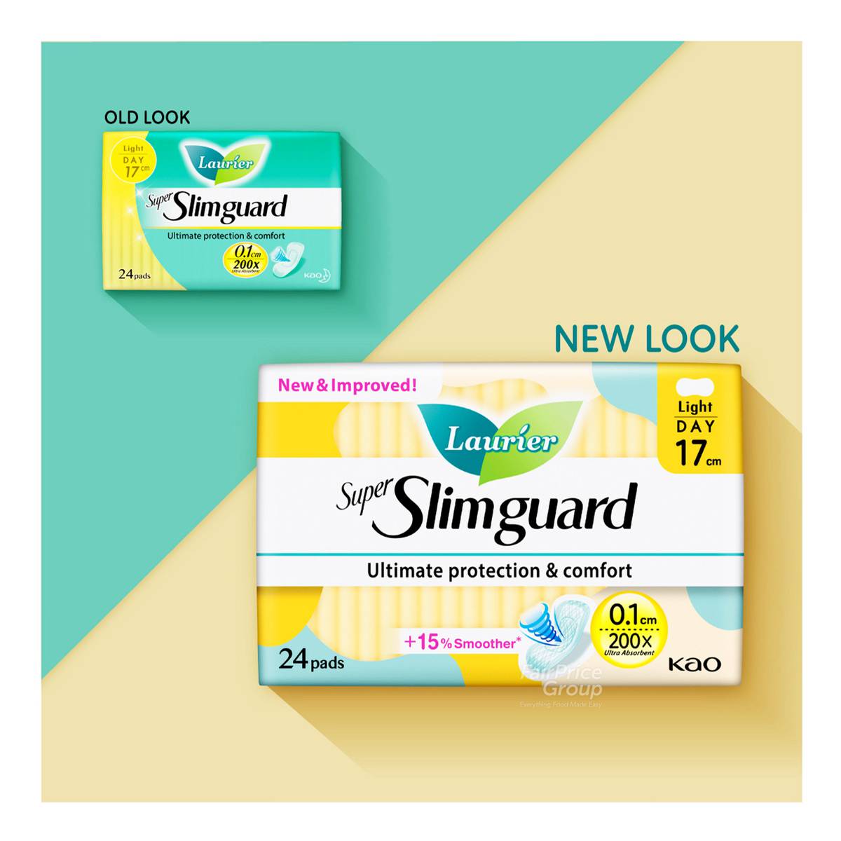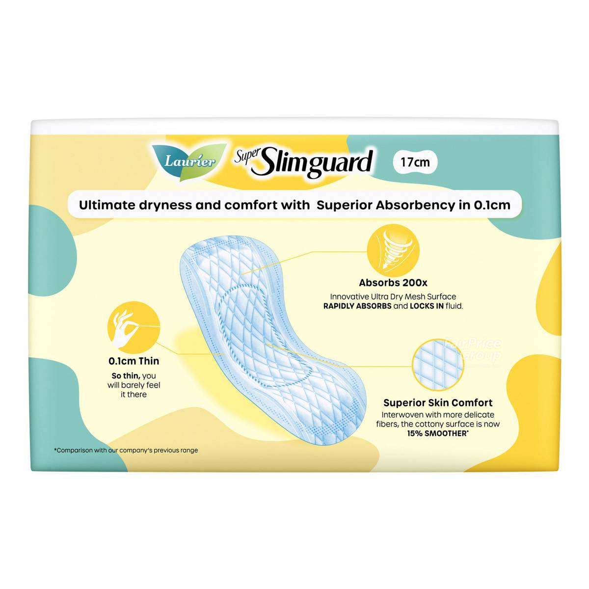 | – | Amazingly absorbent yet comfortable and thin, the new Laurier Super Slimguard is designed specifically for comfort with its: |