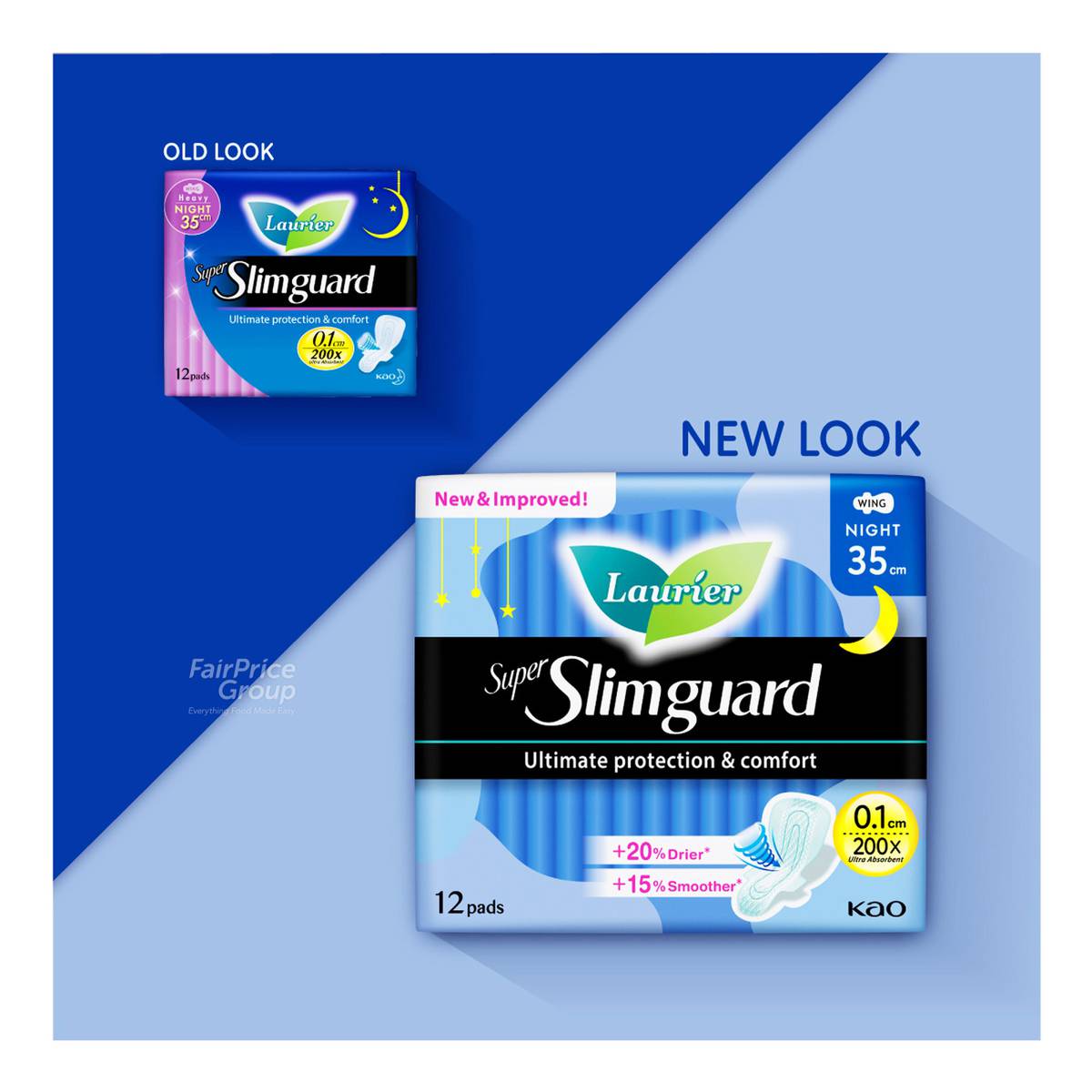 | – | Amazingly absorbent yet comfortable and thin, the new Laurier Super Slimguard is designed specifically for comfort with its: |