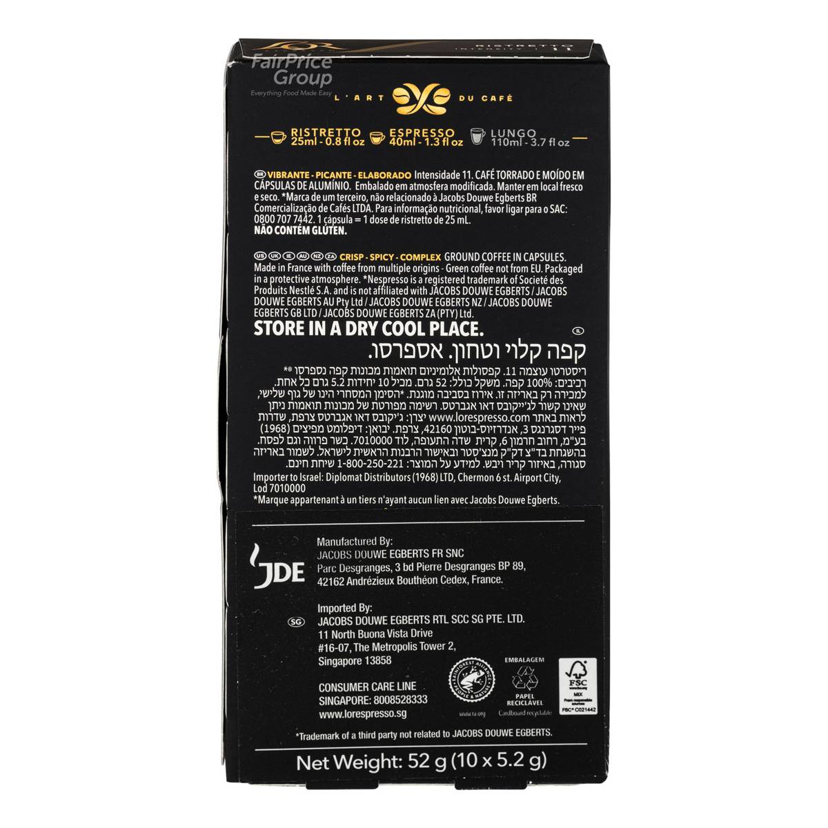 | KEY INFORMATION | Apart of a new generation of aluminium capsules that is made with 100% Arabica coffee beans that has an intensity level of 11. Carefully-considered Ristretto dazzles the senses with its expressive fresh persona and powerful spicy aroma, an ideal ristretto blend that makes striving for espresso perfection an intensely unforgettable journey. |