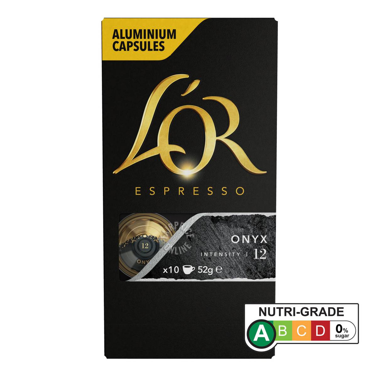 | KEY INFORMATION | Revel in espresso coffee’s darkest character that is apart of a new generation of aluminium capsules that is made with 100% Arabica coffee beans that has an intensity level of 12. Onyx is an ode to the extreme essence of pure espresso – premium, dark roasted Arabica and Robusta beans are finely ground to reveal a pronounced and spicy blend with a splendid bitter cocoa touch. Revel in espresso coffee’s darkest character. |
