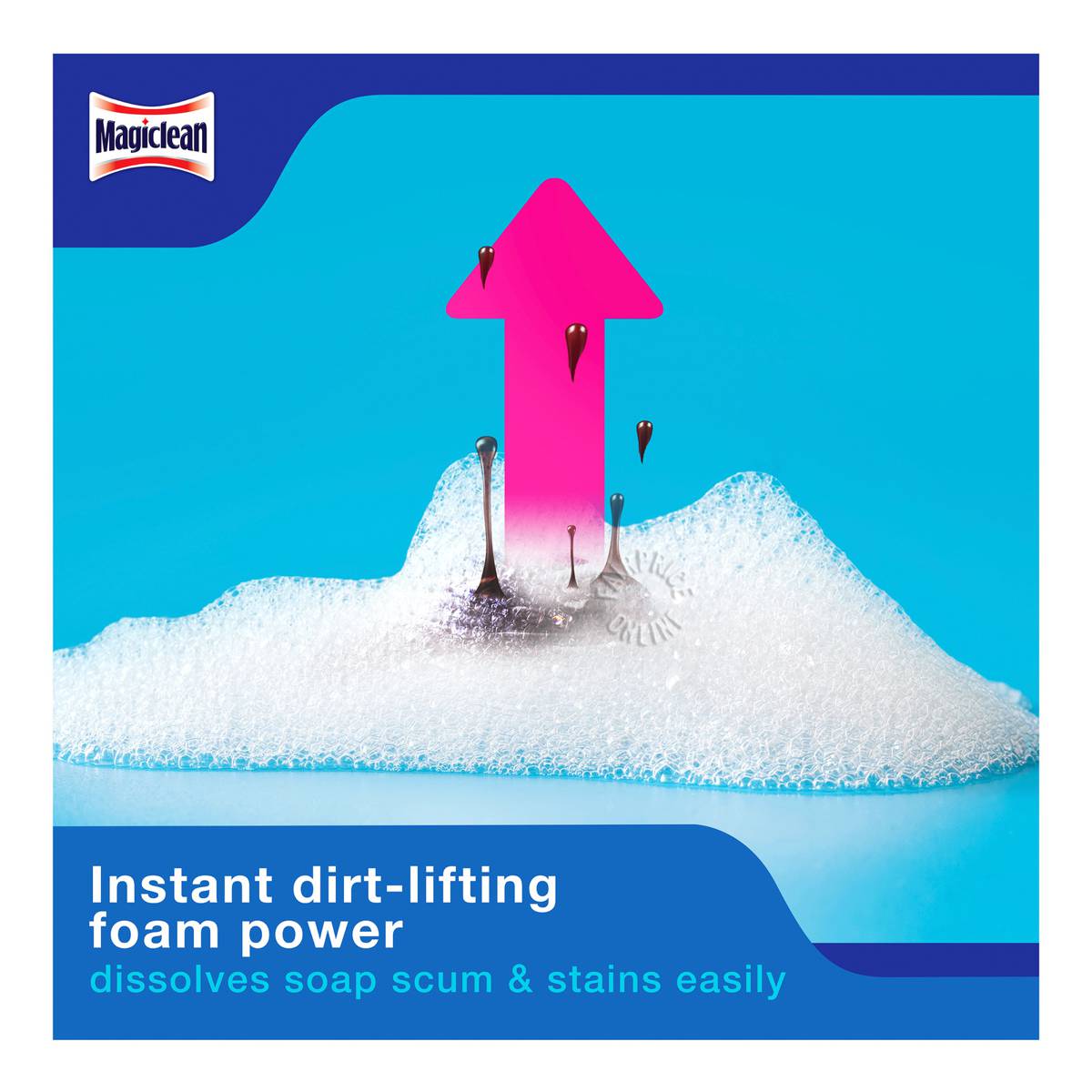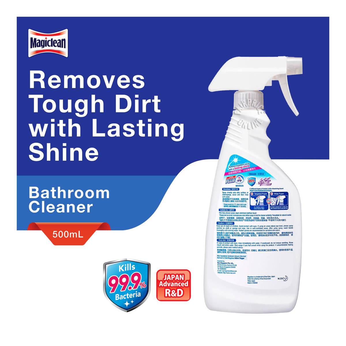 | – | Magiclean Bathroom & Toilet Cleaner keeps your bathroom looking as good as it smells! Formulated with instant stain-dissolving foam power developed by advanced Japan R&D, it effectively dissolves away tough dirt with a lasting shine while leaving behind a fresh lavender fragrance!PERFECT FOR: |