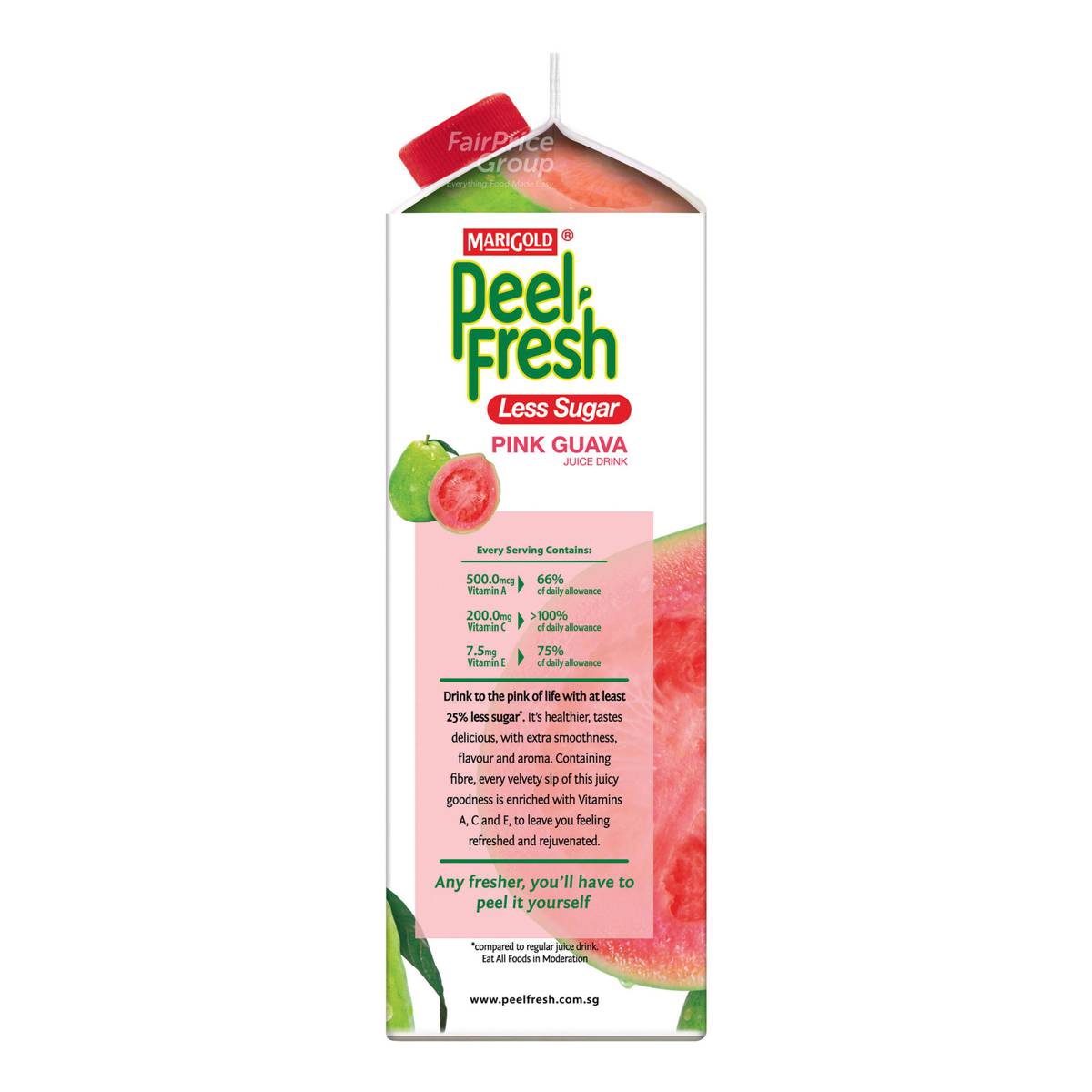 | – | Awarded with the Healthier Choice Symbol (HCS), it is lower in sugar chilled pink guava juice, contains fibre and high in vitamins A, C and E. |