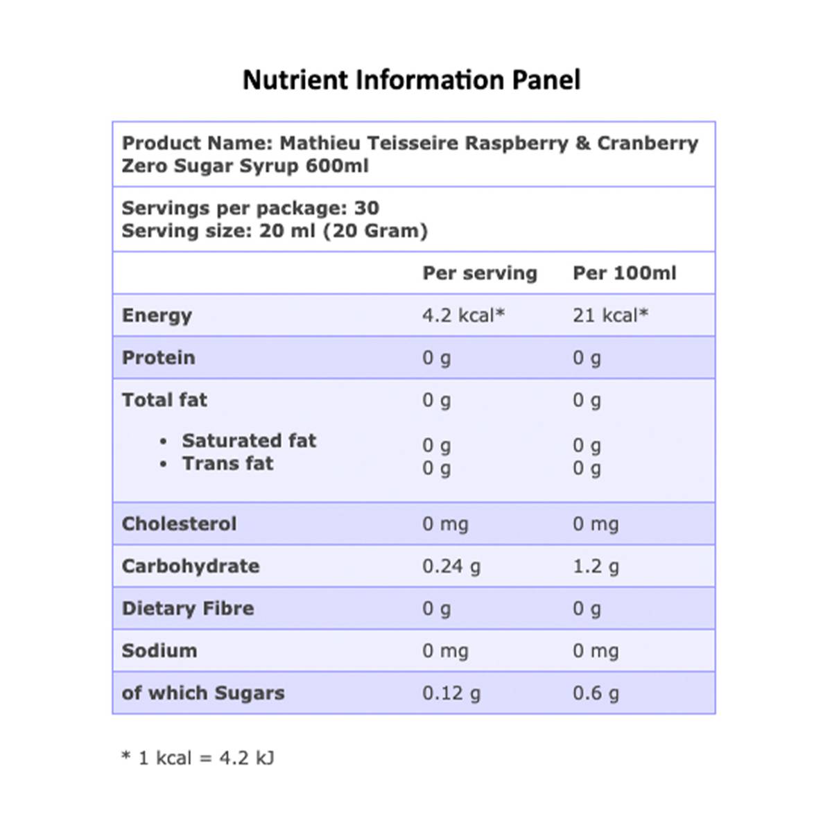 Mathieu Teisseire Zero Sugar Syrup – Raspberry & Cranberry