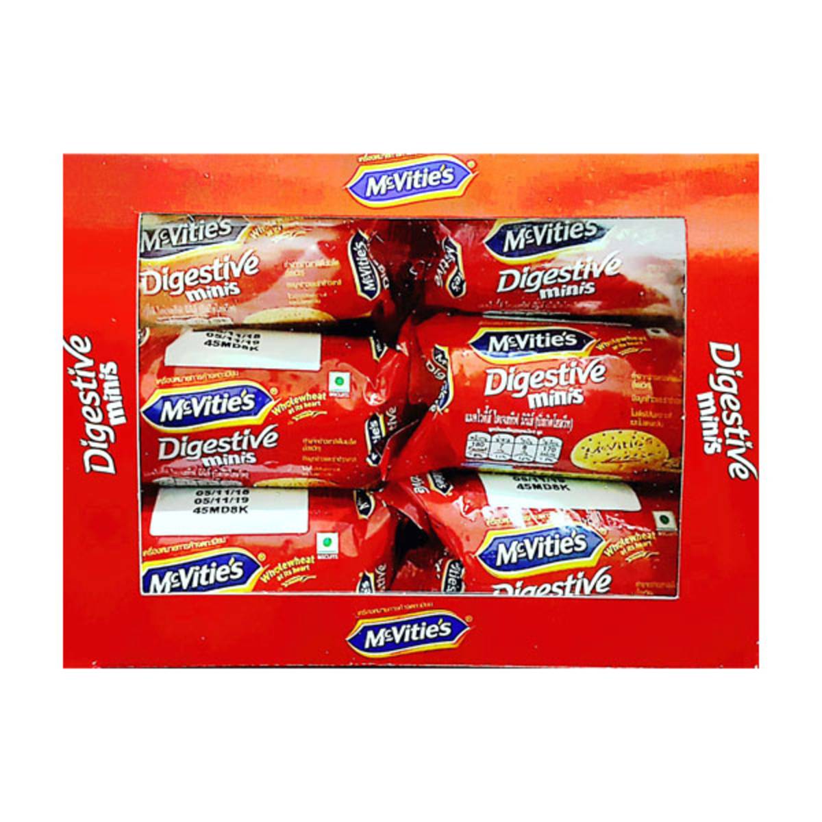 | KEY INFORMATION | McVitie’s digestive wholewheat biscuit offers superior quality and contains whole wheat cereal. Packed with goodness of whole wheat and fibre. Delicious digestive cookies made with finest wholesome ingredients. This family pack contains 12 mini biscuit packets that your whole family can enjoy |