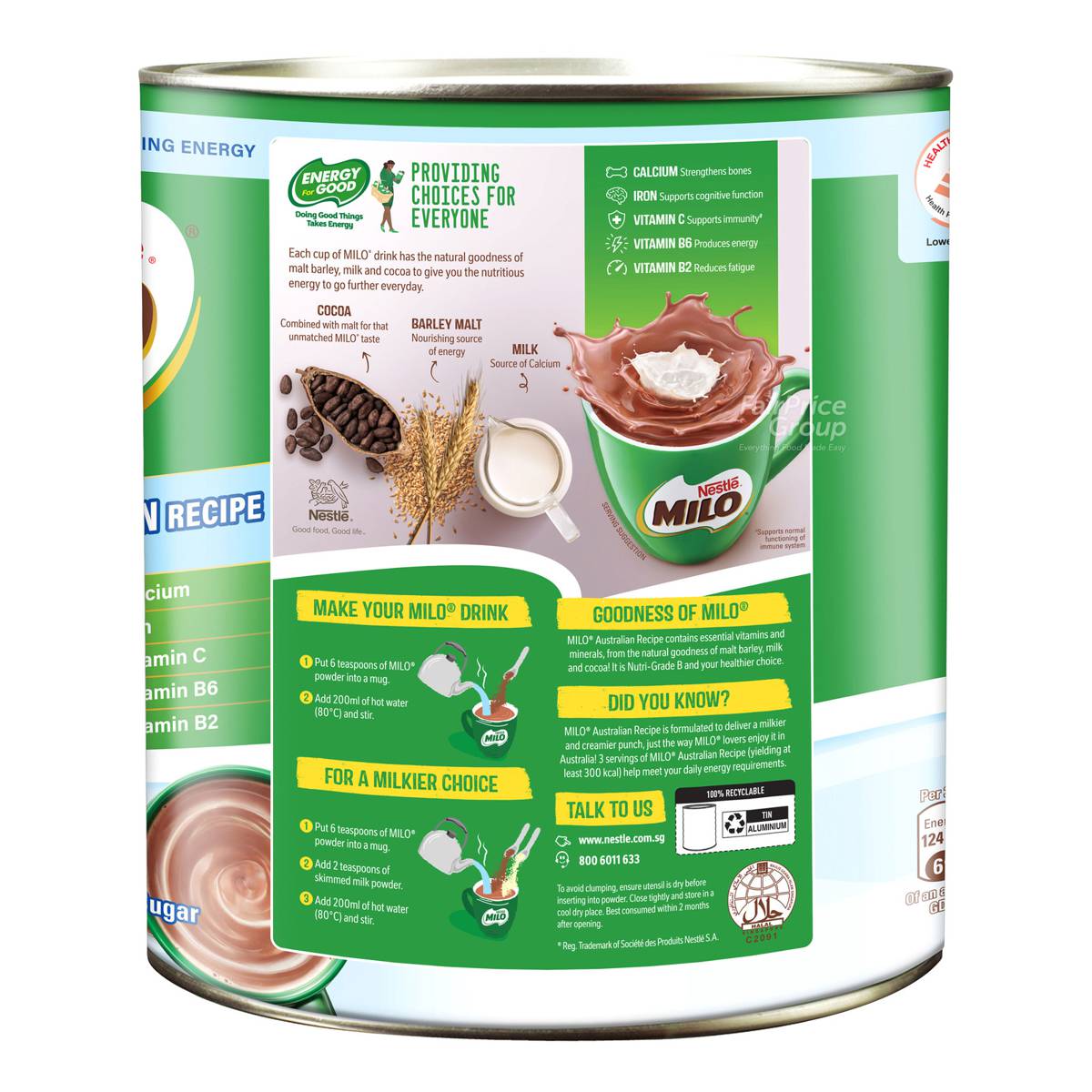 | – | Specially formulated with milk, nutritious malt, vitamins and minerals such as: |