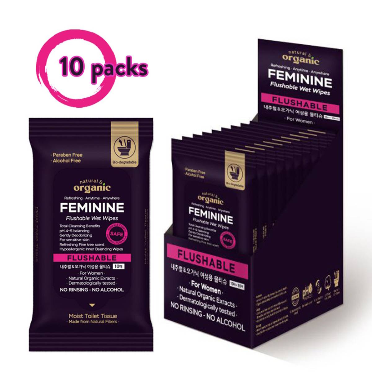 natural & organic Portable Feminine Flushable Wipes 10 packs