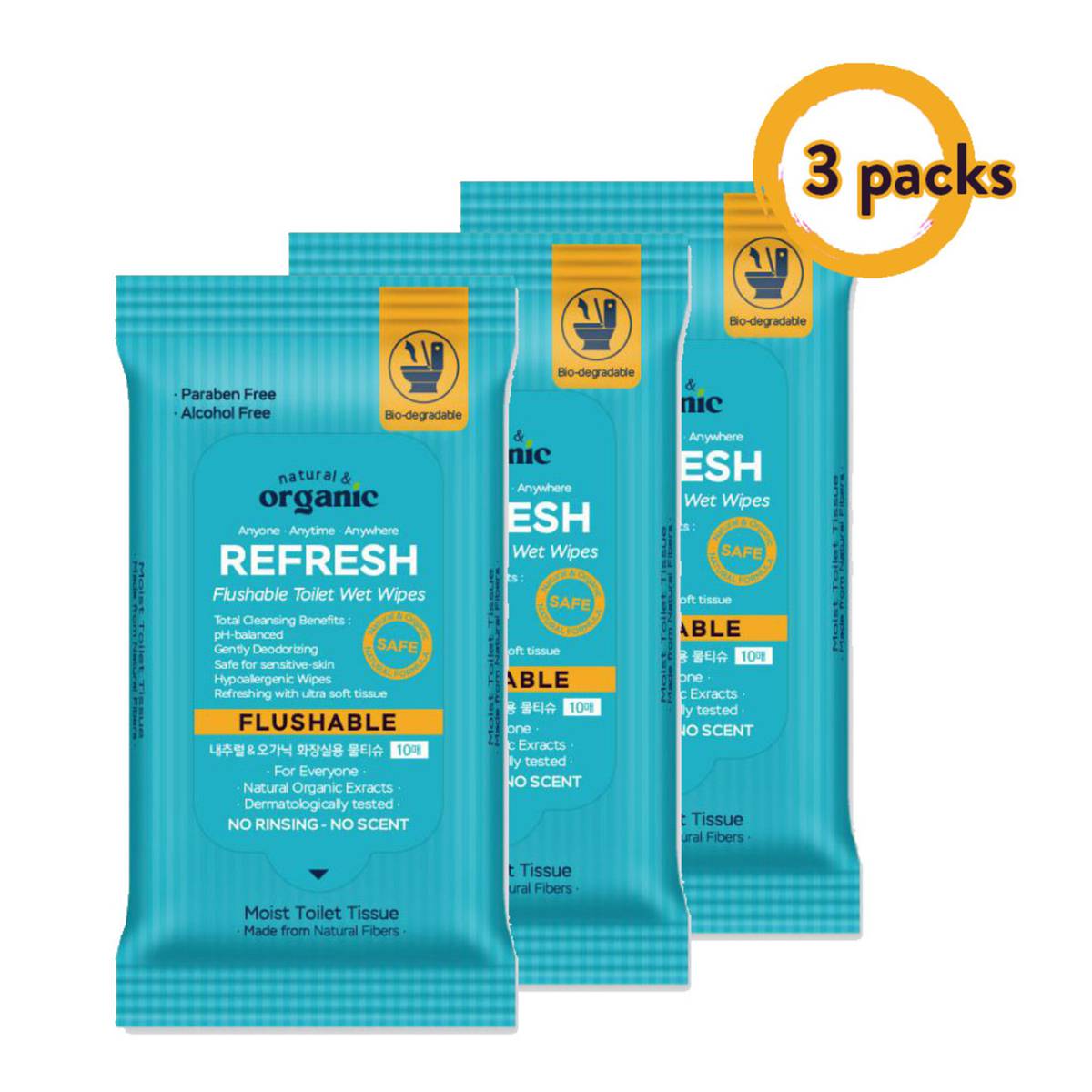 natural & organic Portable Refresh Flushable Wipes 3 packs