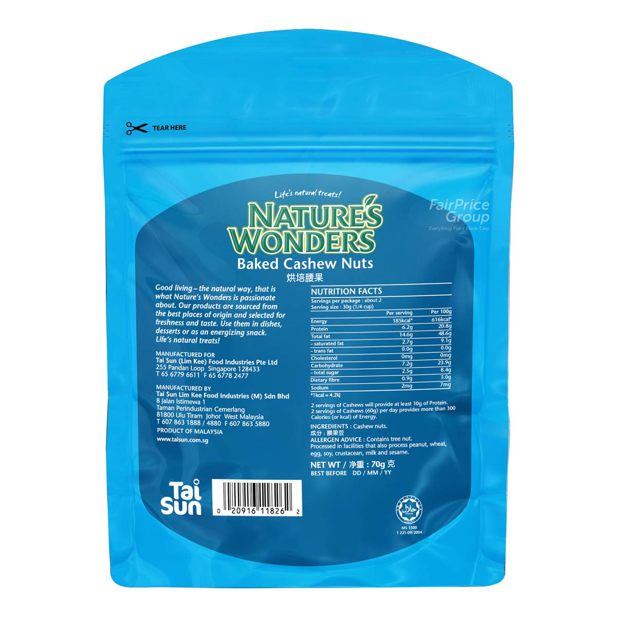 | KEY INFORMATION | Nature’s Wonders Cashew Nuts are suitable to use in dishes, desserts or as snacks. |