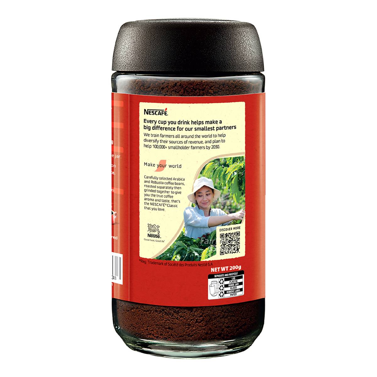 | – | The unmistakable full-flavour of Nescafe Classic is what makes our signature coffee so loved all over the world. Savour the wonderfully rich and refreshing aroma of this medium-dark roast. Start a day right with the first sips of this classic, let the intense taste of Nescafe Classic awaken the mind and body to new opportunities as the rich aroma of this distinctive blend unfolds. Blended quality arabica and robusta beans and then roast them to medium-dark deliciousness to deliver the pleasurable experience. |