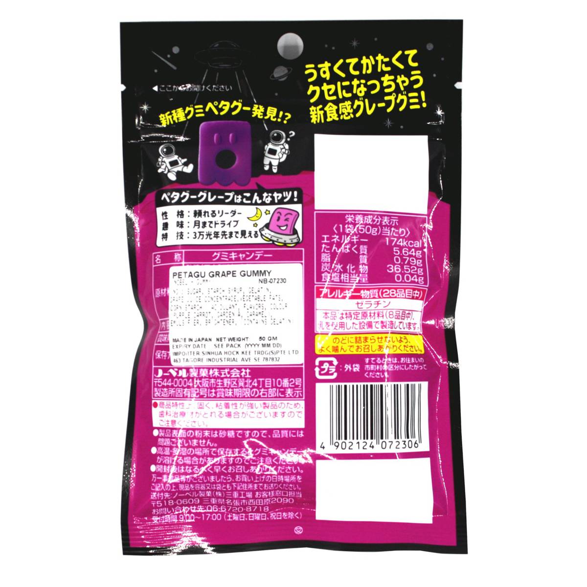 | KEY INFORMATION | – These extra firm gummies get their name from the Japanese word “petanko” which means flat. – Each foot-shaped piece has a refreshing and sweet grape flavor. – Comes in a resealable bag. |