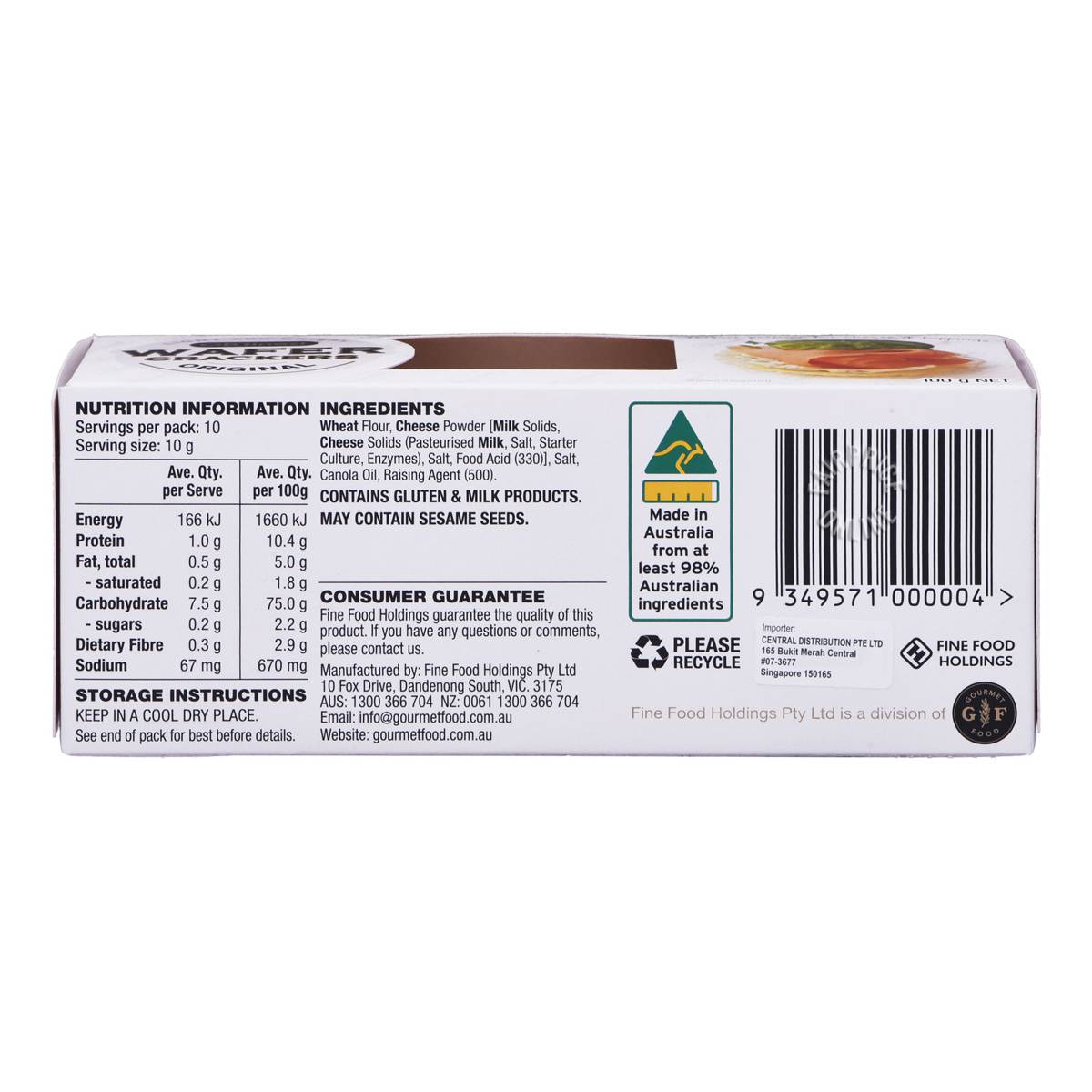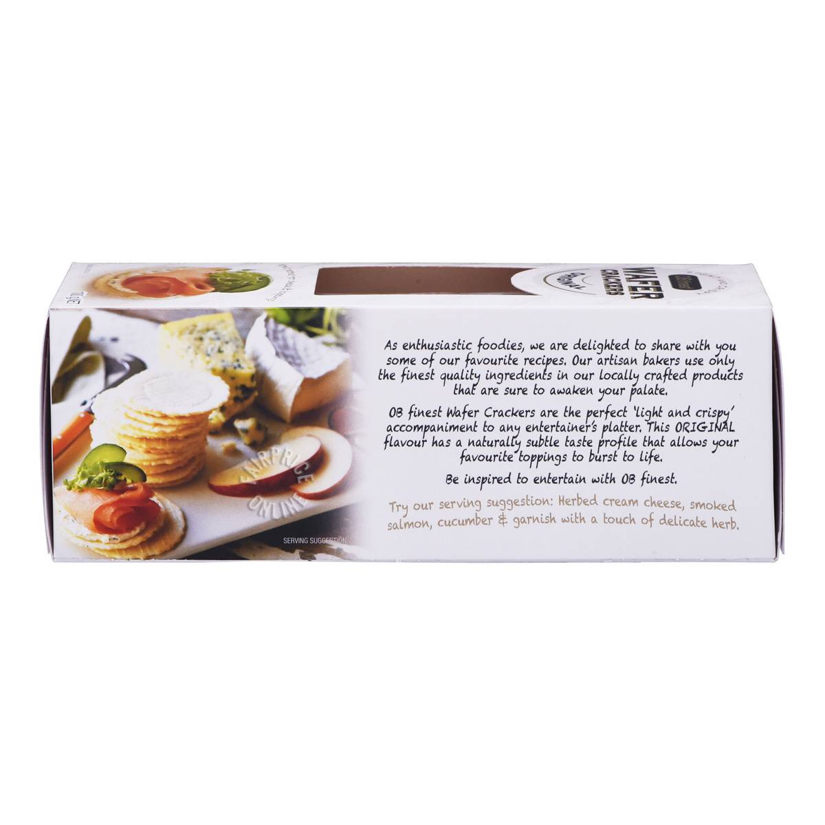 | KEY INFORMATION | Ob Finest Wafer Crackers are the perfect “light and crispy” accomapaniment to any entertainer’s platter. This original flavour has a naturally subtle taste profile, that allows any type of favourite toppings to burst to life. |