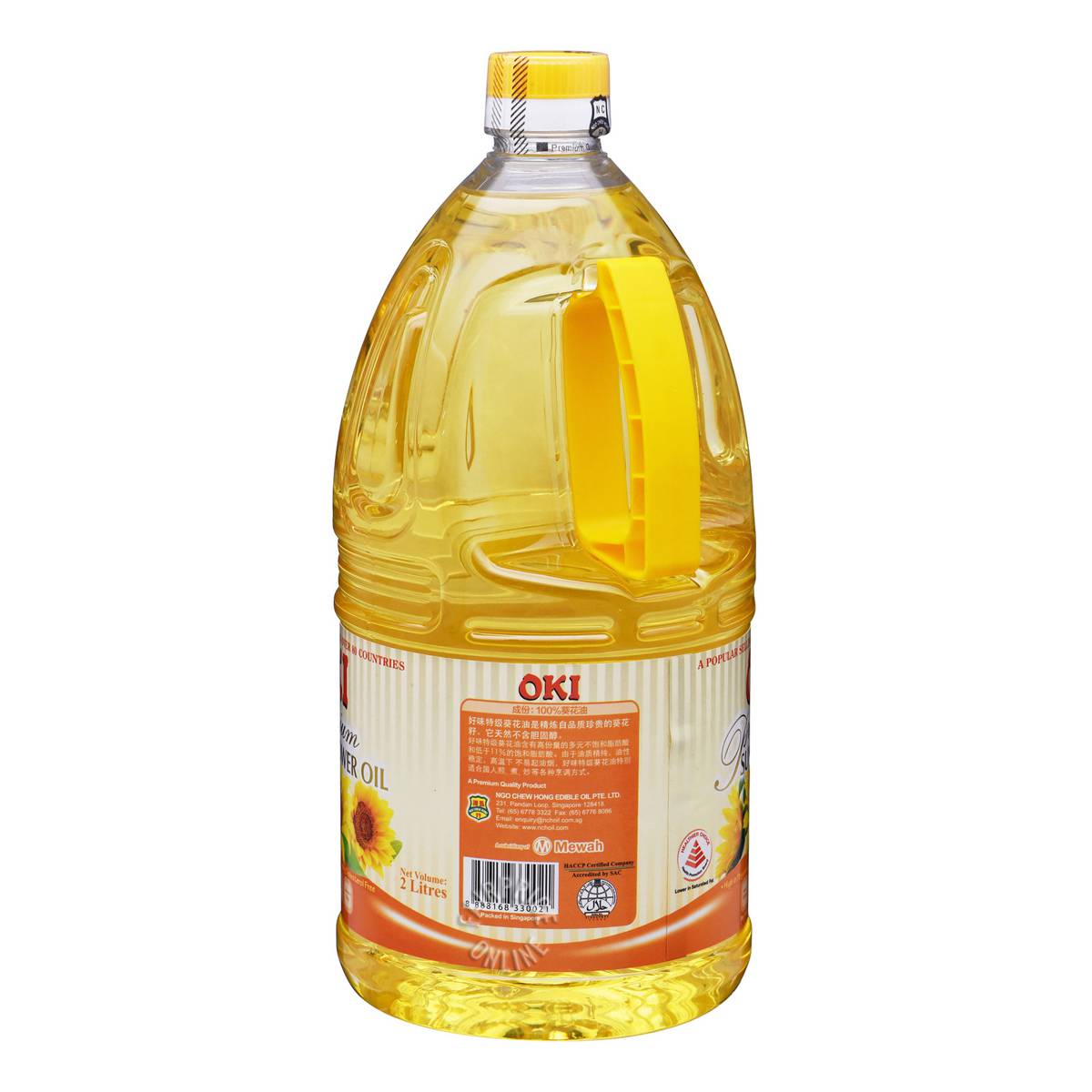 | KEY INFORMATION | Oki Premium Sunflower Oil produced by the finest quality of sunflower seeds is 25% lower in saturated fat as compared to regular cooking oil. It has a naturally light colour and has a clean taste with a high smoking point, making it an excellent for home cooking or salads. |