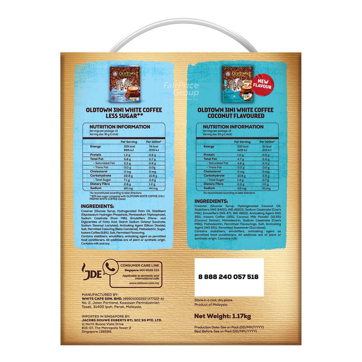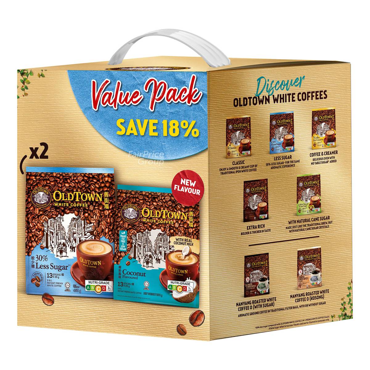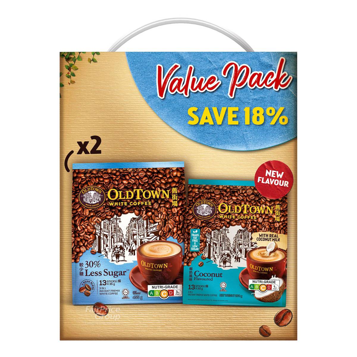 Old Town Instant White Coffee-Less Sugar+Coconut(Value Pack)