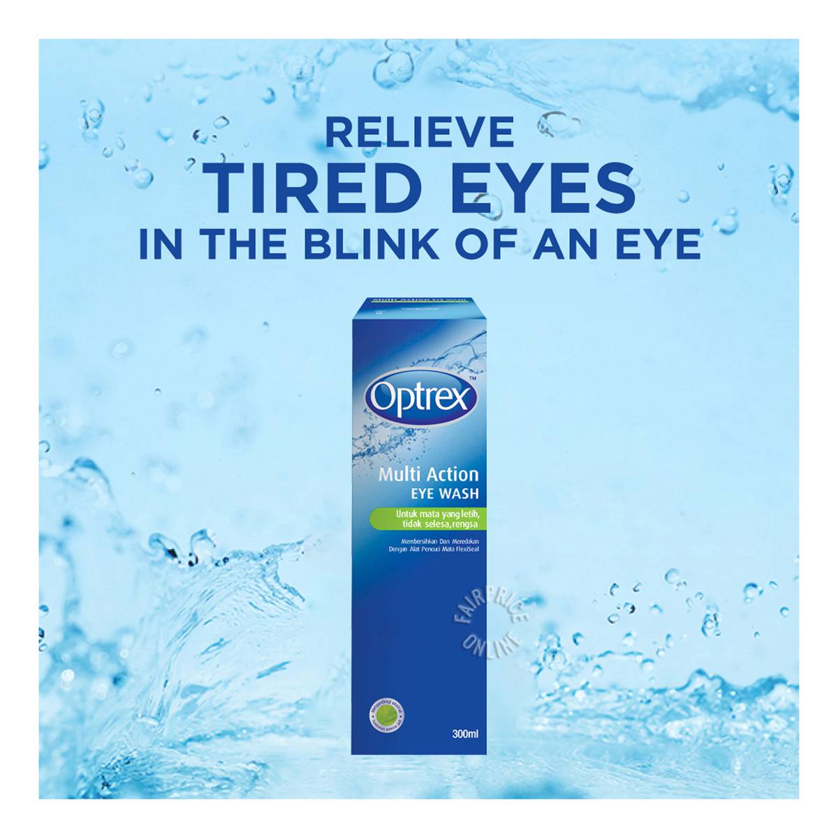 | – | Optrex Eye Wash with Eye Bath is specially designed to soothe tired and uncomfortable eyes. Modern living (such as computer work and air conditioning), dust particles, pollen, grit and smoke can damage the eyes’ surface, leaving eyes feeling tired and uncomfortable. Balanced at the natural pH level of tears and enriched with plant extracts, it gently helps to remove dust, make-up and other particles that can easily get trapped on the surface of your eye. |