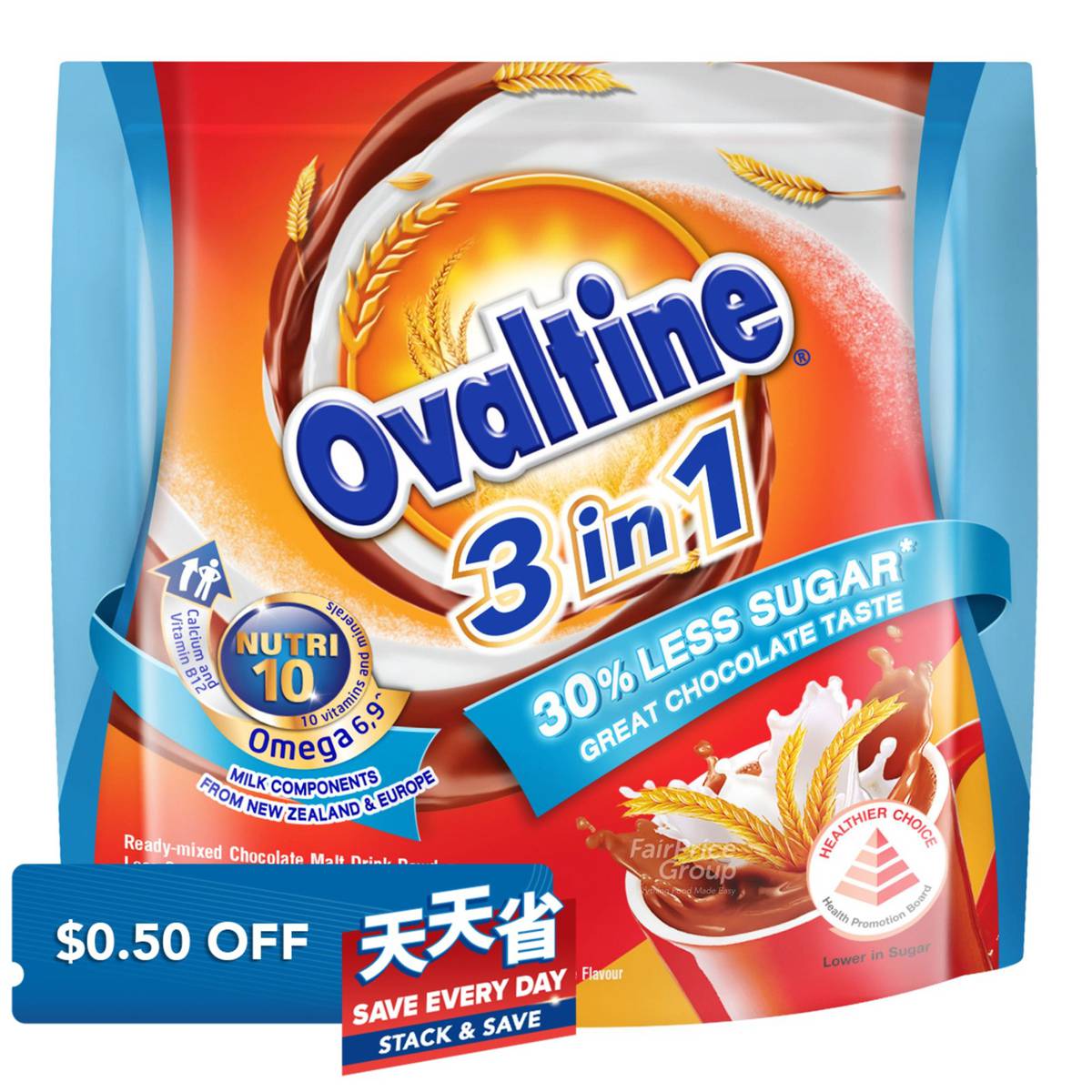 Ovaltine 3 in 1 Instant Malt Drink Sachets – Less Sweet
