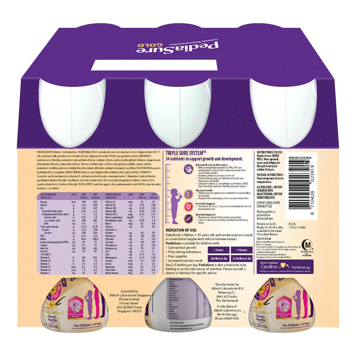 | – | • 2 daily serves of PediaSure® Ready-to-Drink help to fulfil >50% of key nutrient’s Recommended Dietary Allowances (RDA)* |