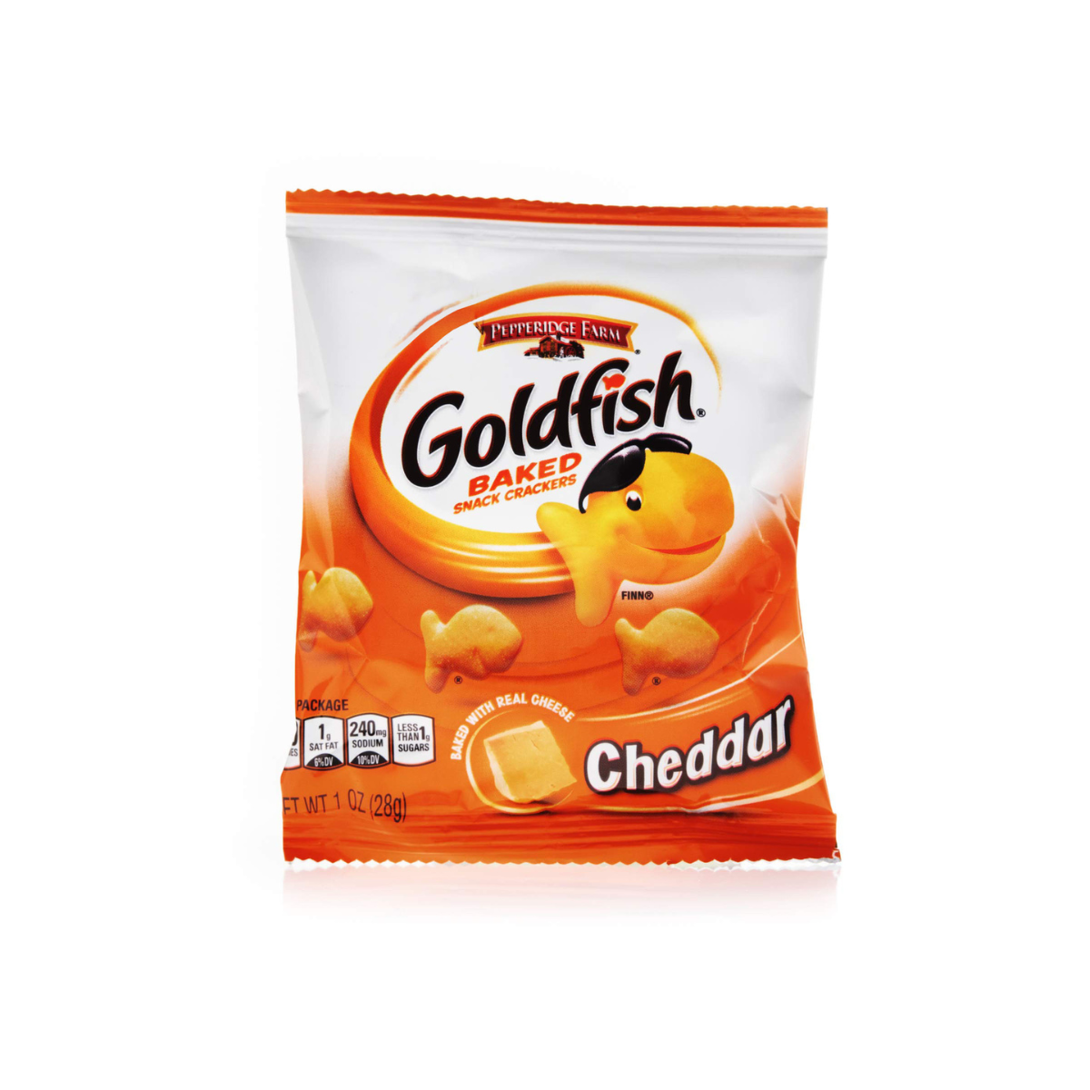 | KEY INFORMATION | When it comes to goldfish crackers, you can feel good about serving your favorite snacks. Cheddar goldfish are baked with 100% real cheese and are made with no artificial preservatives or flavors. Everyone loves goldfish crackers – they’re tasty and fun! These 1 ounce single-serve packs are great for on-the-go or perfectly portioned snacking. For pepperidge farm, baking is more than a job. It’s a real passion. Each day, our bakers take the time to make every cookie, pastry, cracker, and loaf of bread the best way they know how – by using carefully selected, quality ingredients |