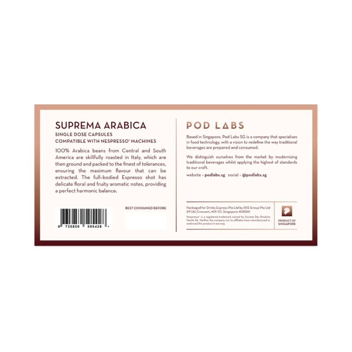 Pod Labs Nespresso Compatible Suprema Arabica (10 Capsules)