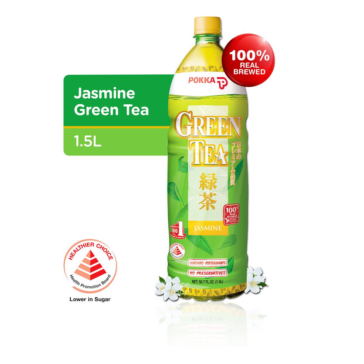 | KEY INFORMATION | 100% real-brewed from real tea leaves, Pokka Jasmine Green Tea delivers the superior taste you have come to love. The blend of aromatic jasmine with the highest quality green tea promises a refreshing enjoyment with natural antioxidants goodness. It contains no preservatives nor colouring. |
