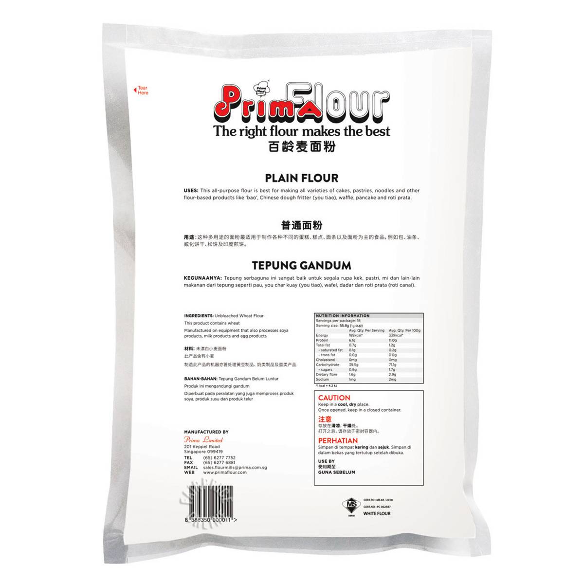 | KEY INFORMATION | All-purpose flour. Best for making a variety of cakes, pastries, noodles and other flour-based products like ‘bao’, chinese dough fritters (you tiao), waffles, pancakes and roti pratas. |