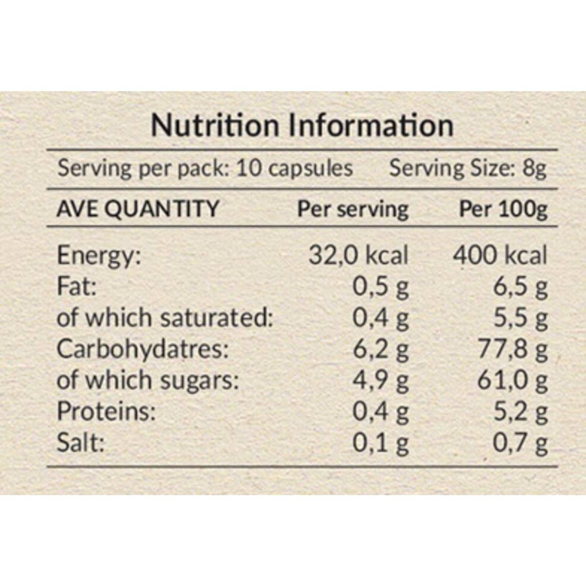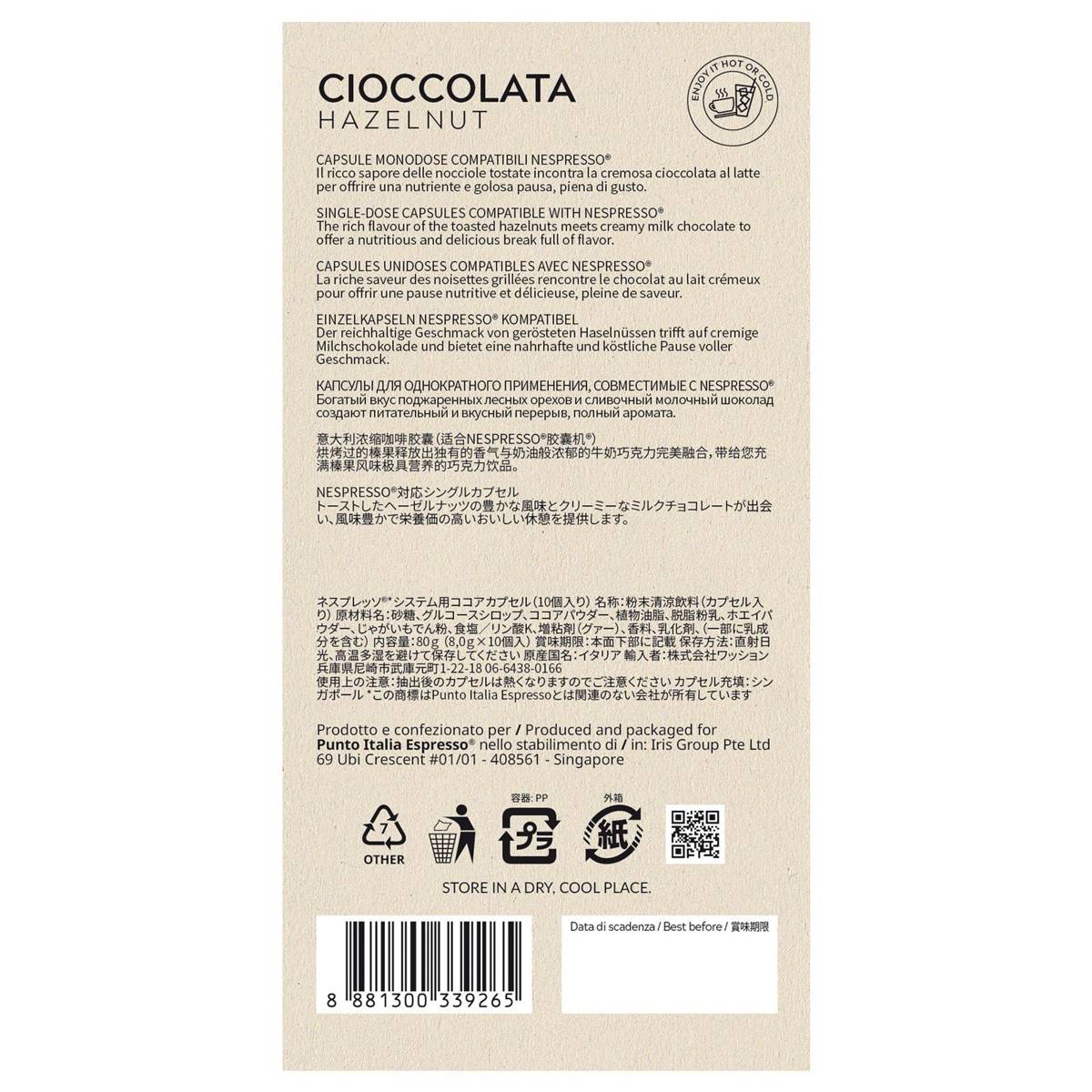 | – | -The rich flavour of the toasted hazelnuts meets creamy milk chocolate to offer a nutritious and delicious break full of flavor.*Nespresso is not the property of Punto Italia Espresso nor of any of the companies associated with Punto Italia Espresso. |