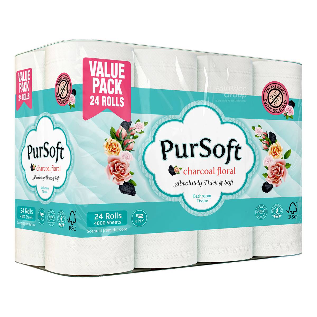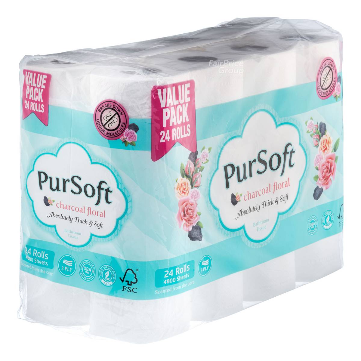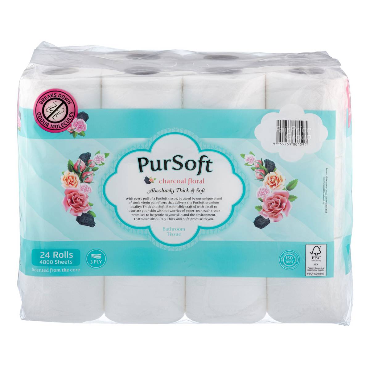 Pursoft Bathroom Tissue Pulp Charcoal Floral (3 ply)