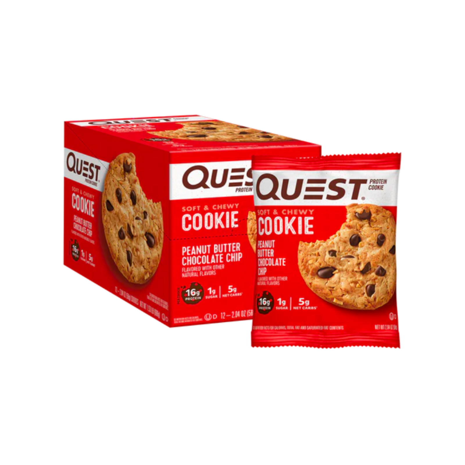 | KEY INFORMATION | Cheat on cookies with cookies. Quest Peanut Butter Chocolate Chip Flavored Protein Cookies are now softer & yummier for a taste that reminds you of homemade peanut butter chocolate chip cookies. |