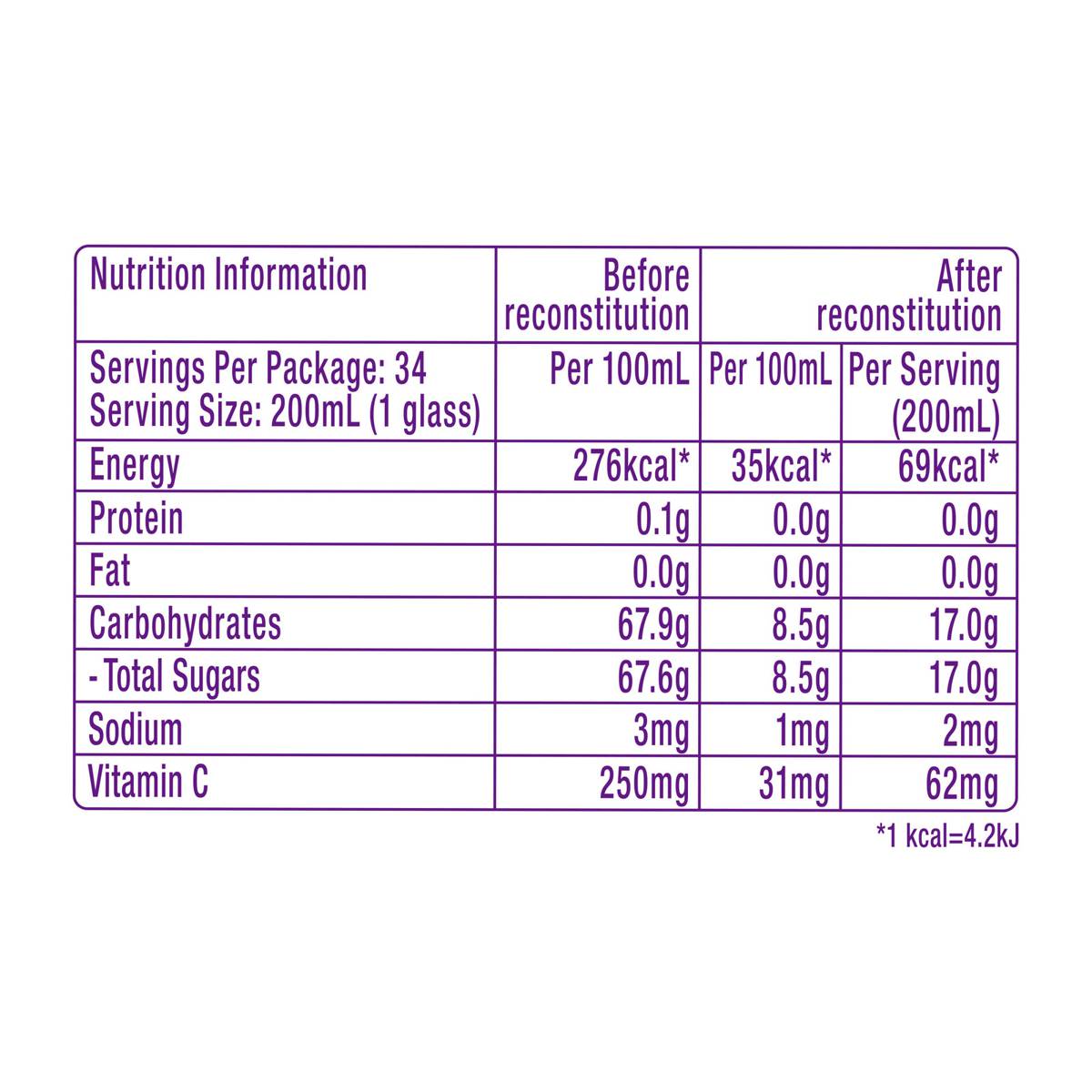 | – | • No artificial sweetener, flavouring and colouring |