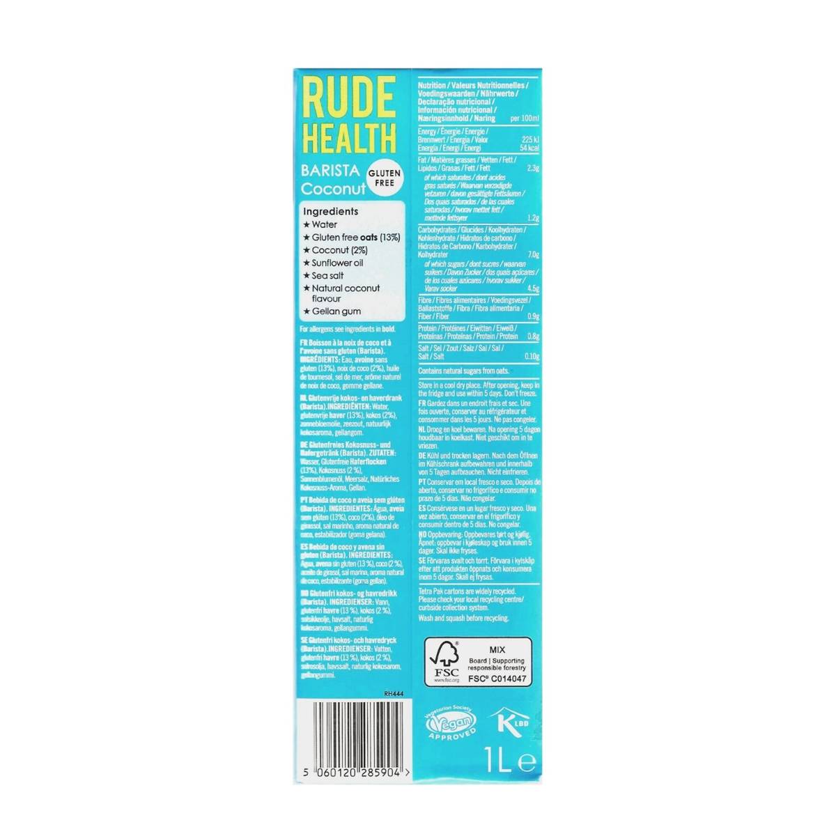 | KEY INFORMATION | Coffee meet your match. Froth, foam or gently heat oat-based Rude Health Barista Coconut for the perfect latte, cappuccino or iced coffee. Enjoy it in tea and other hot drinks too. |