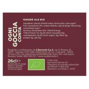 | KEY INFORMATION | Made with organic ginger ingredients. Ideal for a refreshing and revitalizing experience. All drinks are produced with S.Bernardo natural mineral water, without preservatives, without colorants, without sweeteners, with only organic cane sugar and with organically grown fruit. |