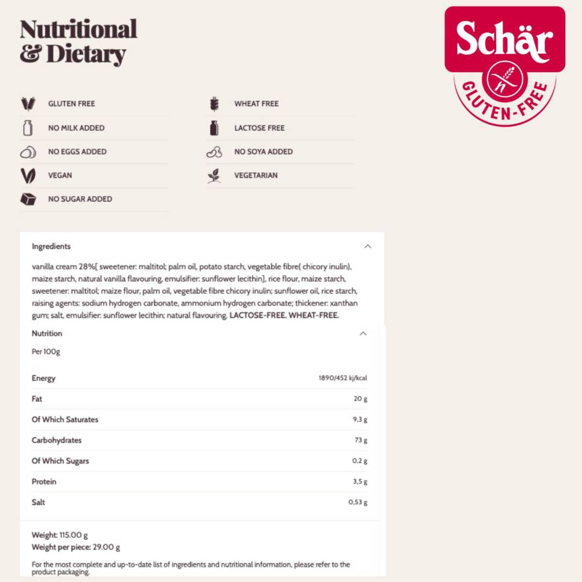 Schar Vanilla Creams Cookies Sugar free, Gluten Free