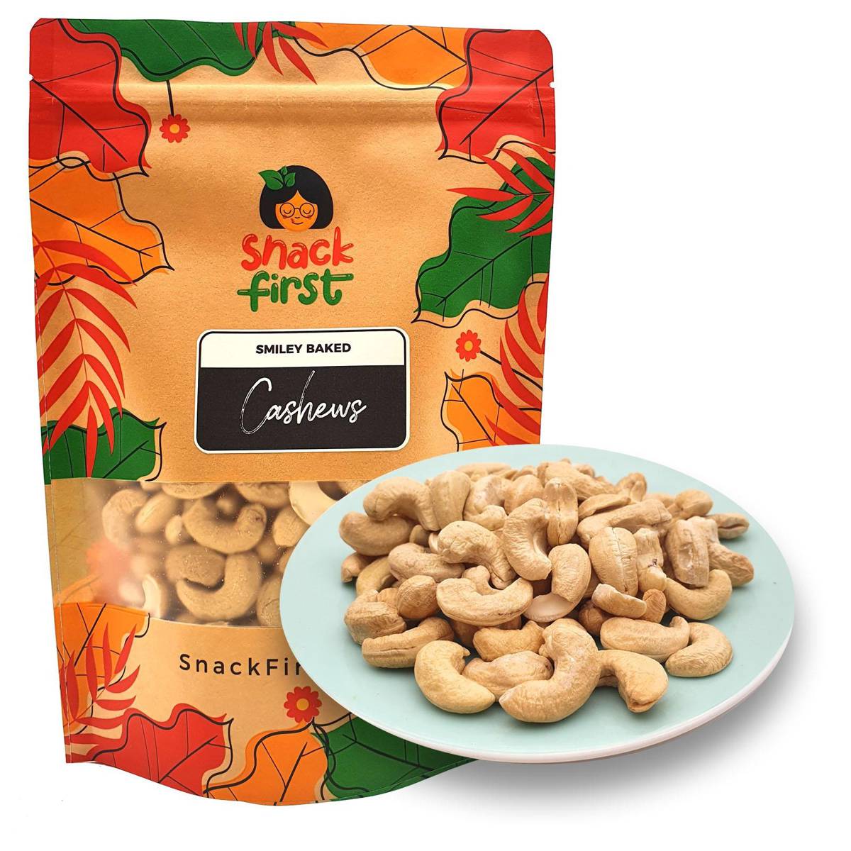 SnackFirst Smiley Baked Cashews – Unsalted Nuts