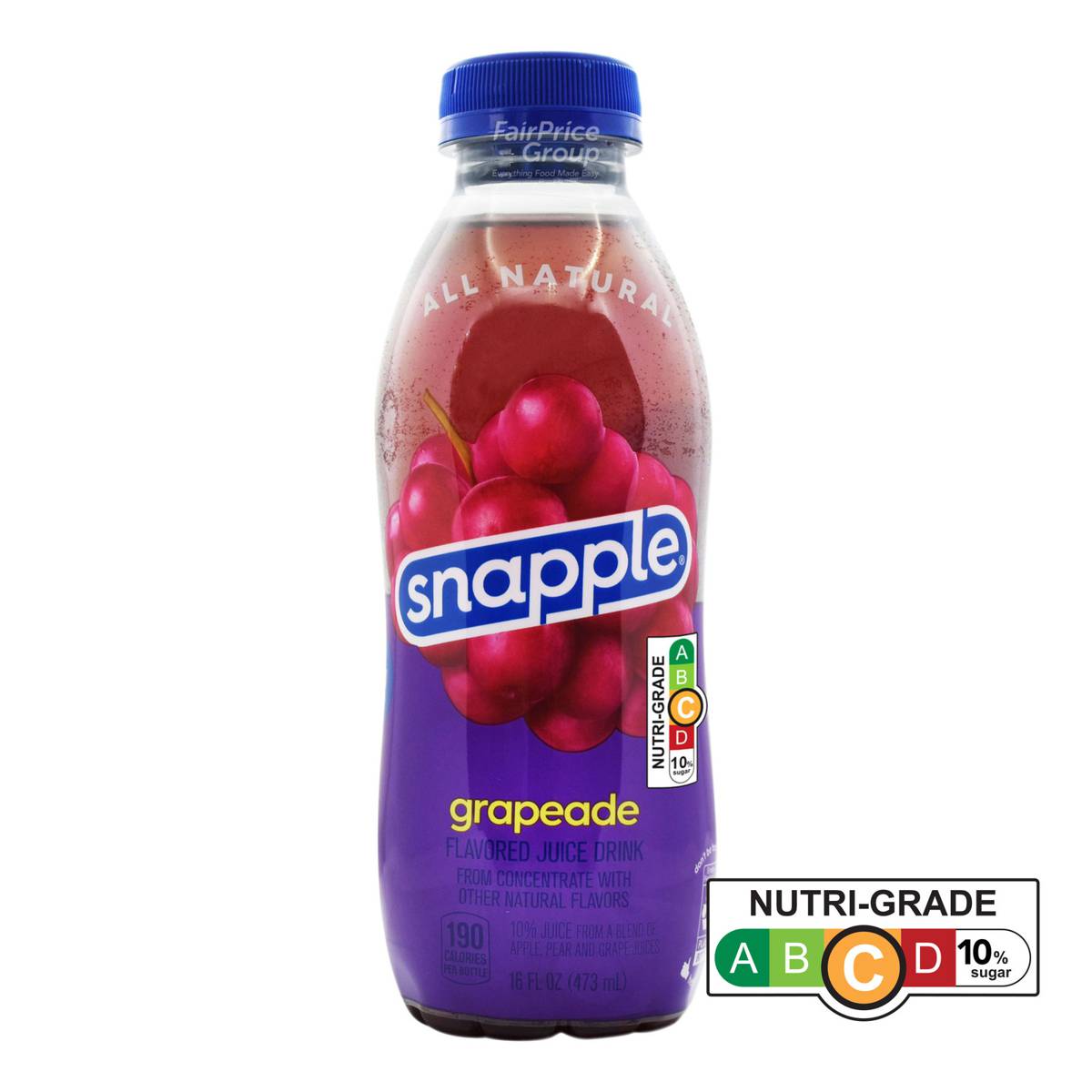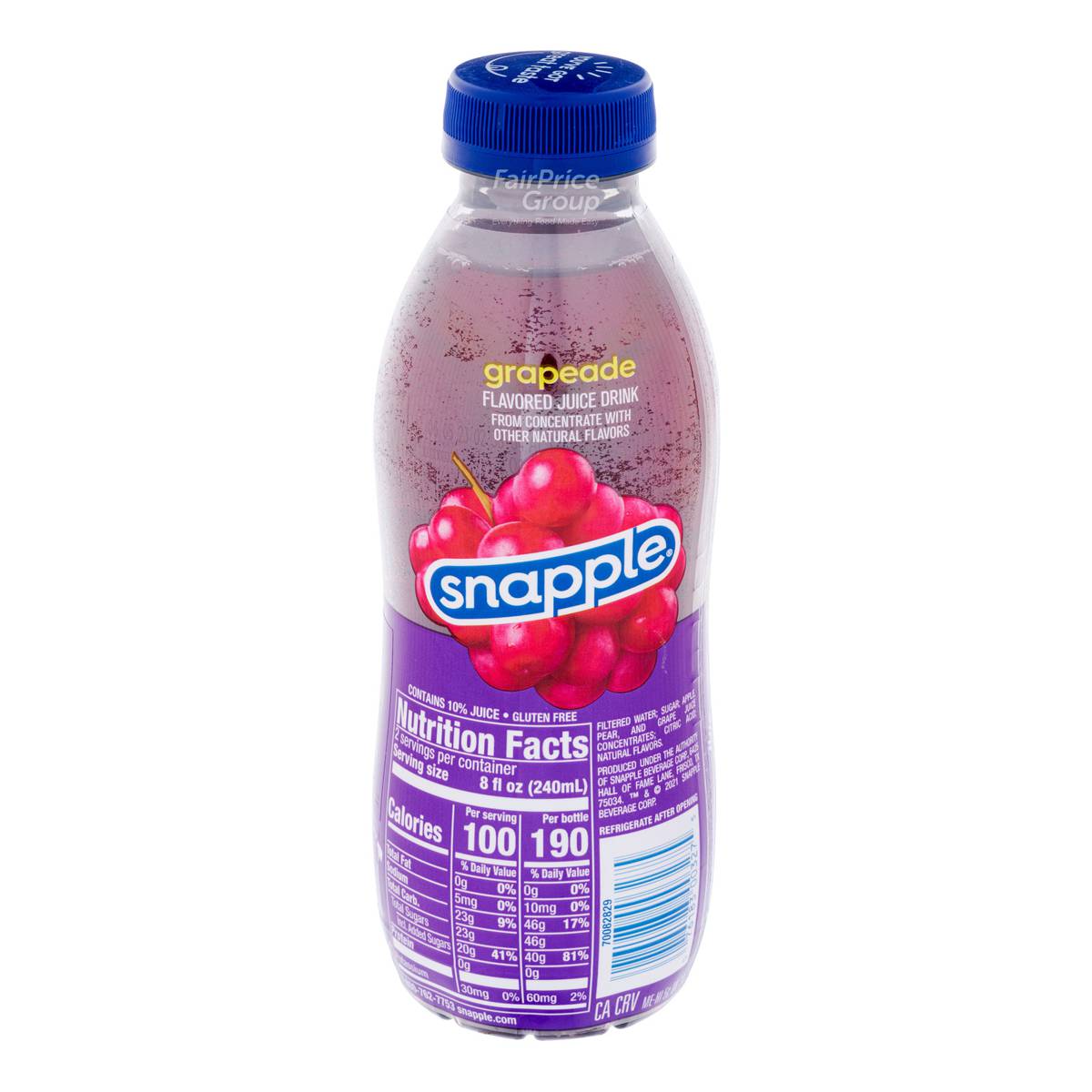 | KEY INFORMATION | • Snapple All Natural Grapeade Juice Drink has no artificial flavors, no preservatives – nothing like that in this bottle. Just real ingredients! With 10% juice •Made from the best stuff on earth |