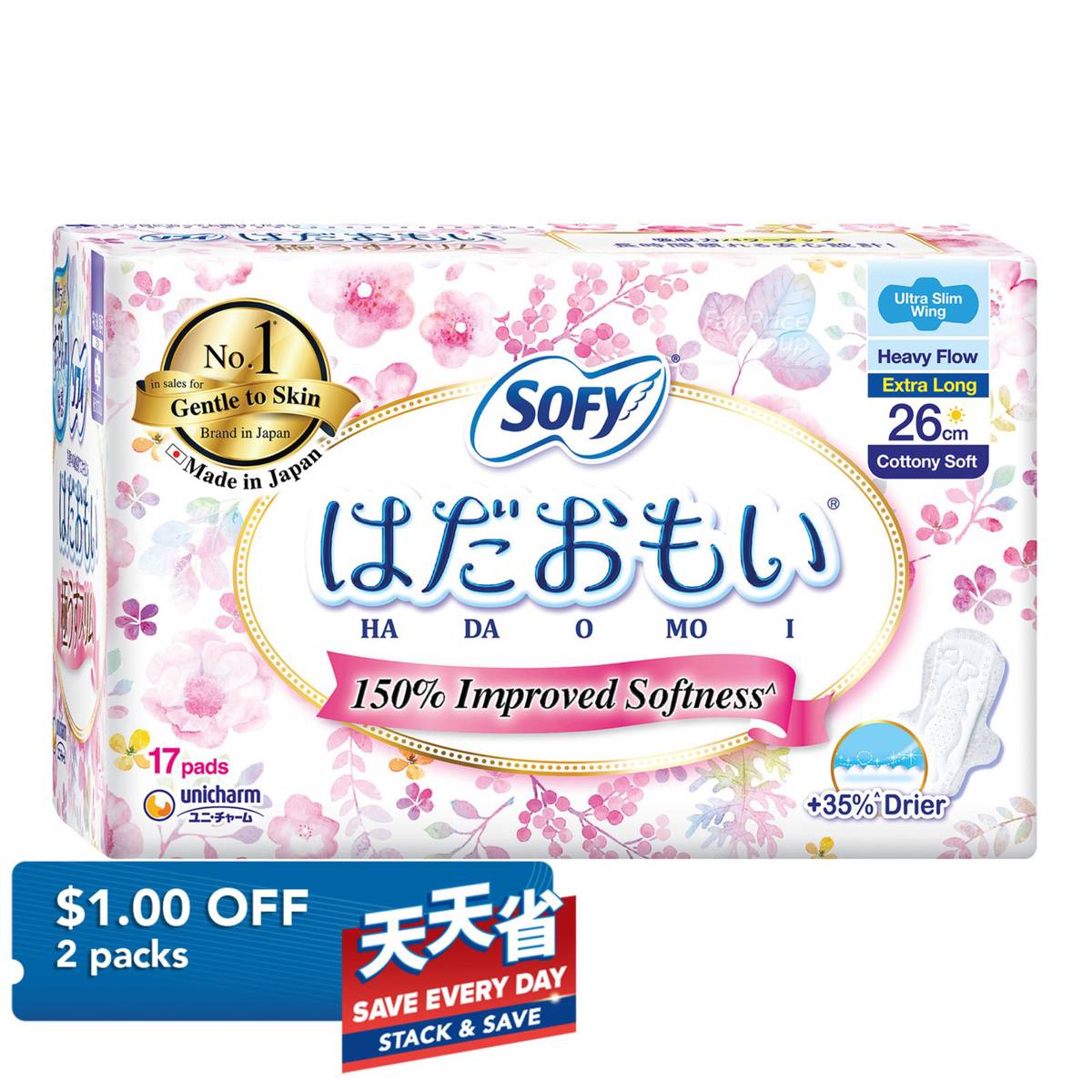 Sofy Hadaomoi Day Ultra Slim Wing Pads – Heavy (26cm)